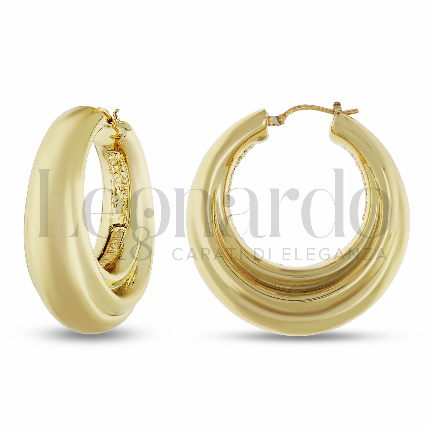 Orecchini a Cerchio da Donna, Air Collection, realizzati in Elettroformatura, canna 8 mm, diametro 25 mm, finitura lucida, in Oro Giallo.