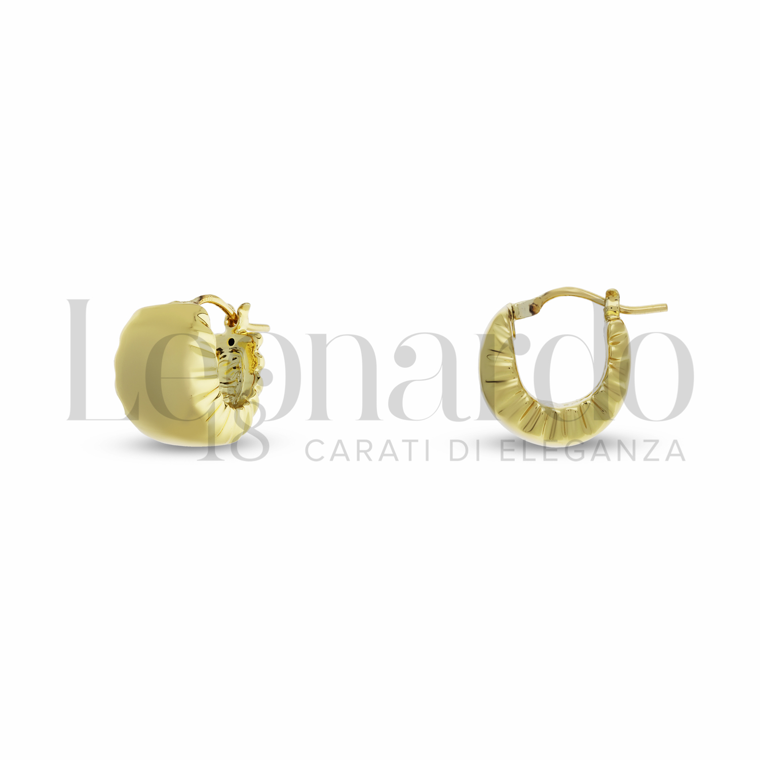 Orecchini da Donna, realizzati in Elettroformatura, Air Collection, diametro interno 8 mm, spessore massimo 12 mm, finitura lucida in Oro Giallo.