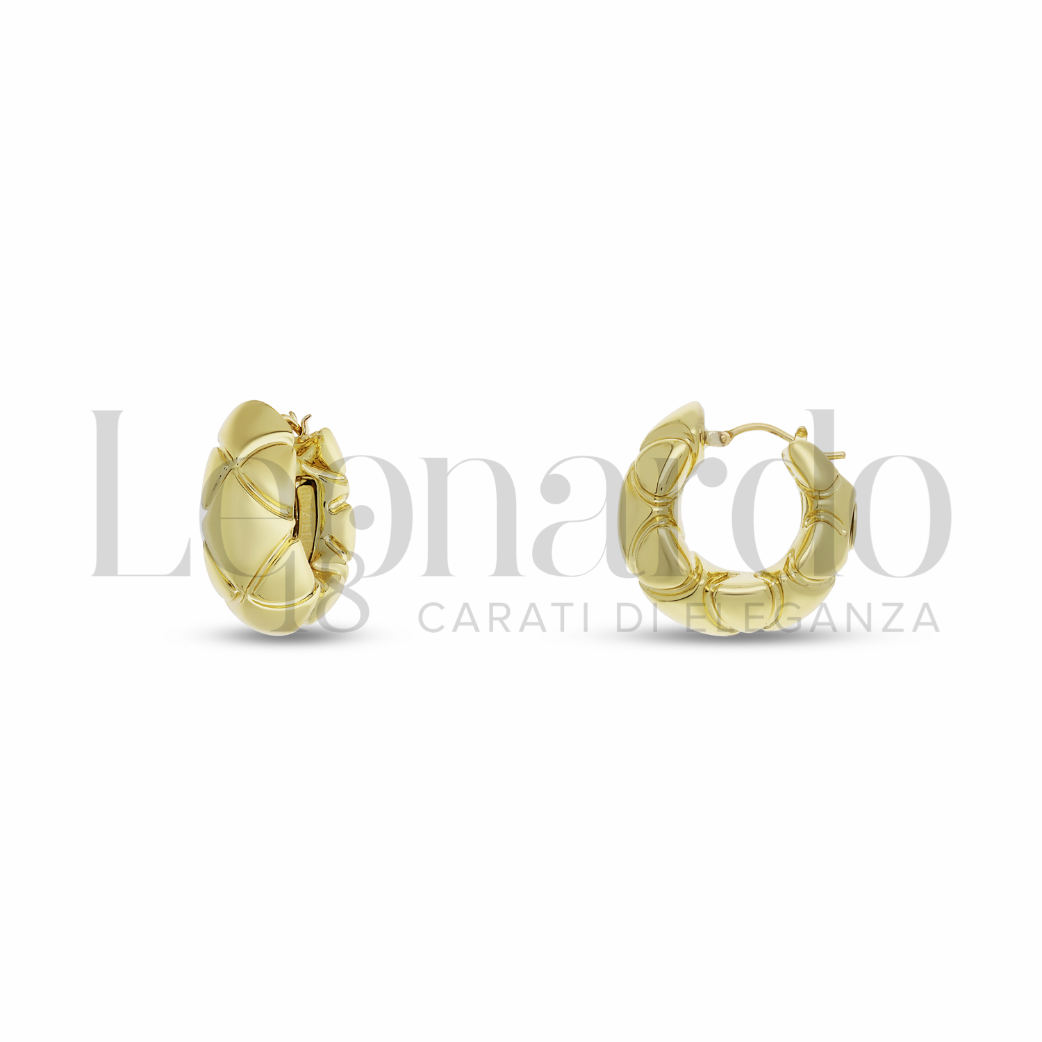 Orecchini a Cerchio da Donna, realizzati in Elettroformatura, Air Collection, diametro interno 14 mm, canna 8 mm, finitura Lucida, in Oro Giallo.