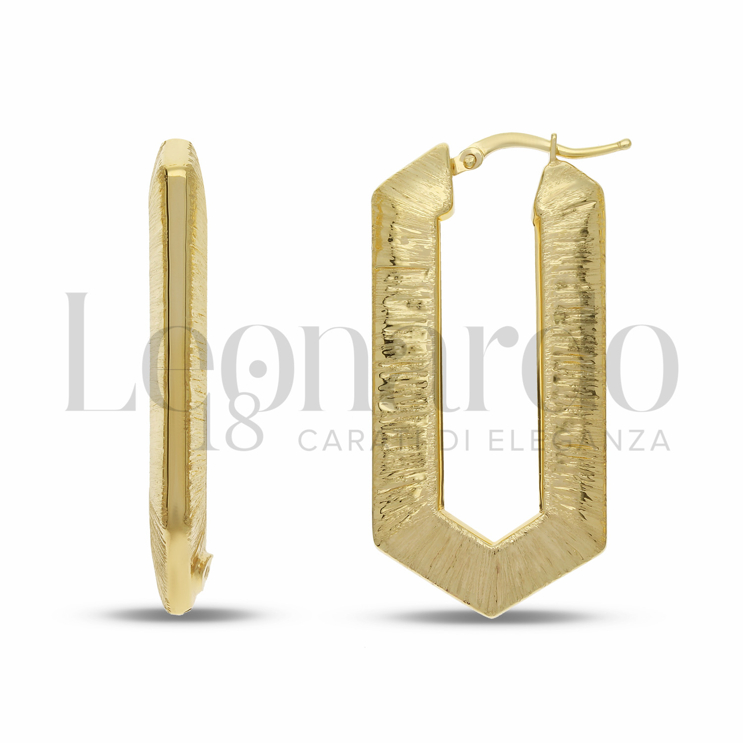 Orecchini Elettroformati da Donna, spessore 5 mm, finitura satinata, chiusura a baionetta in Oro Giallo.