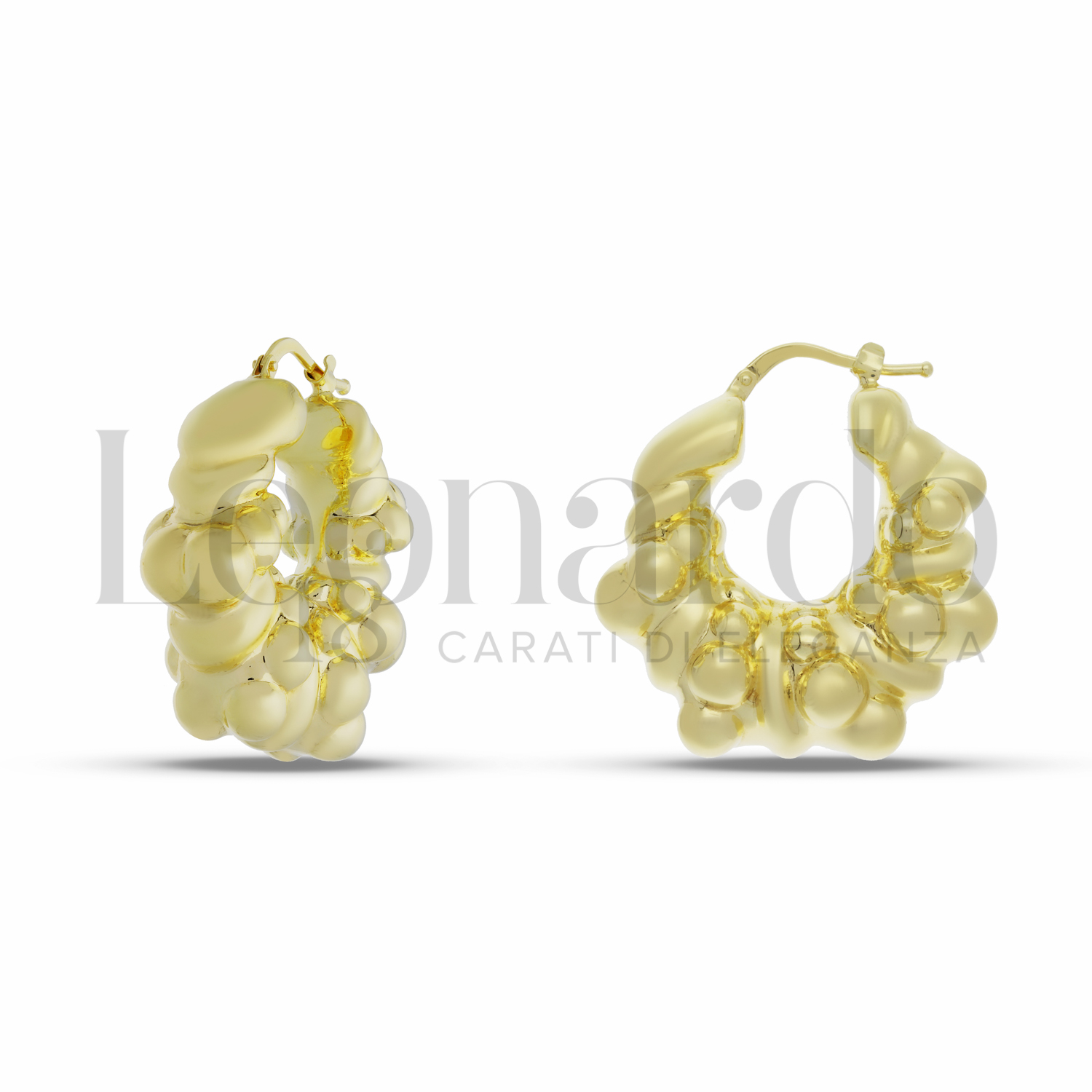 Orecchini a Cerchio Elettroformati da Donna, canna da 8 mm, diametro interno 10 mm, finitura Lucida in Oro Giallo.