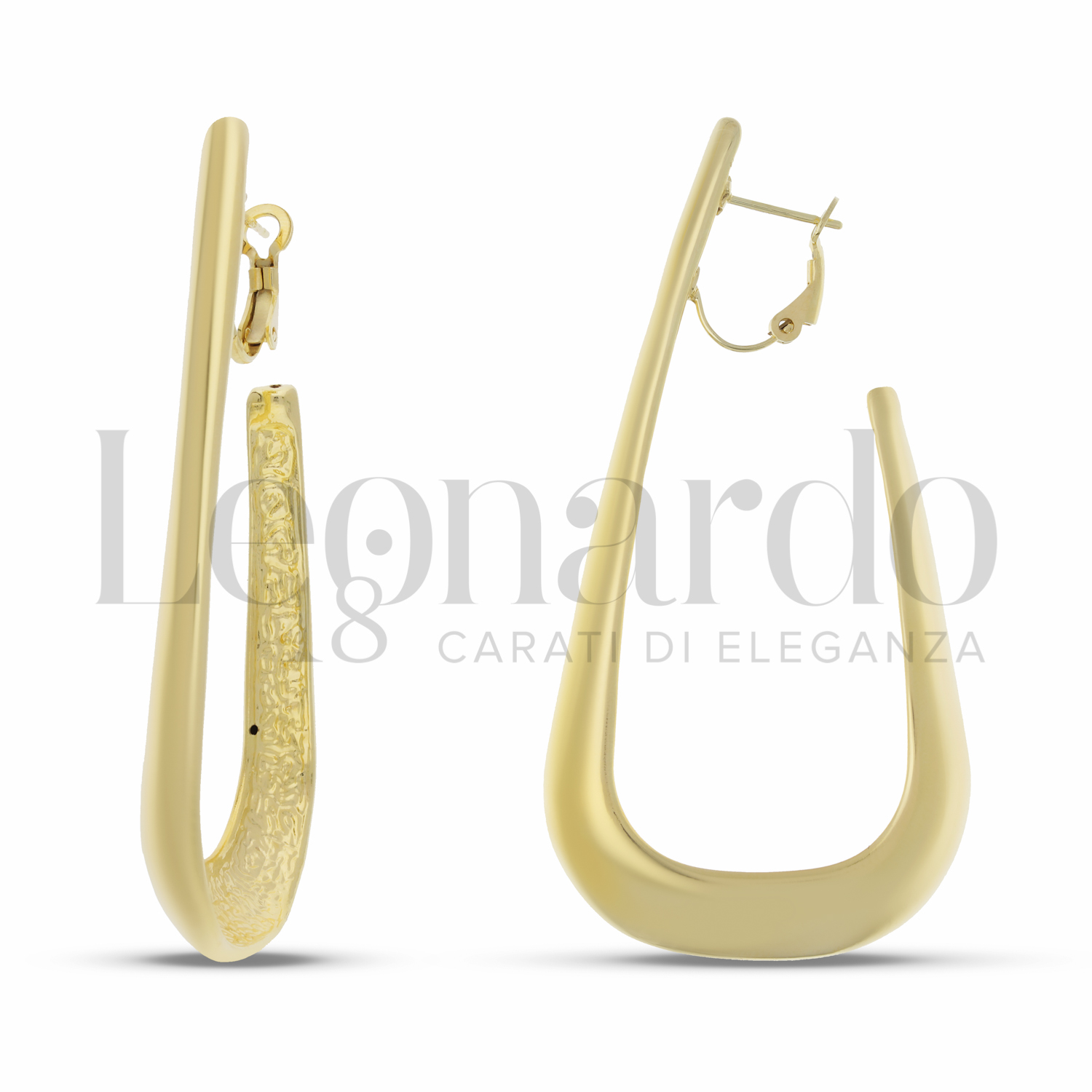 Orecchini Elettroformati da Donna, a Forma di Rettangolo, 2 ° misura, finitura Lucida in Oro Giallo.