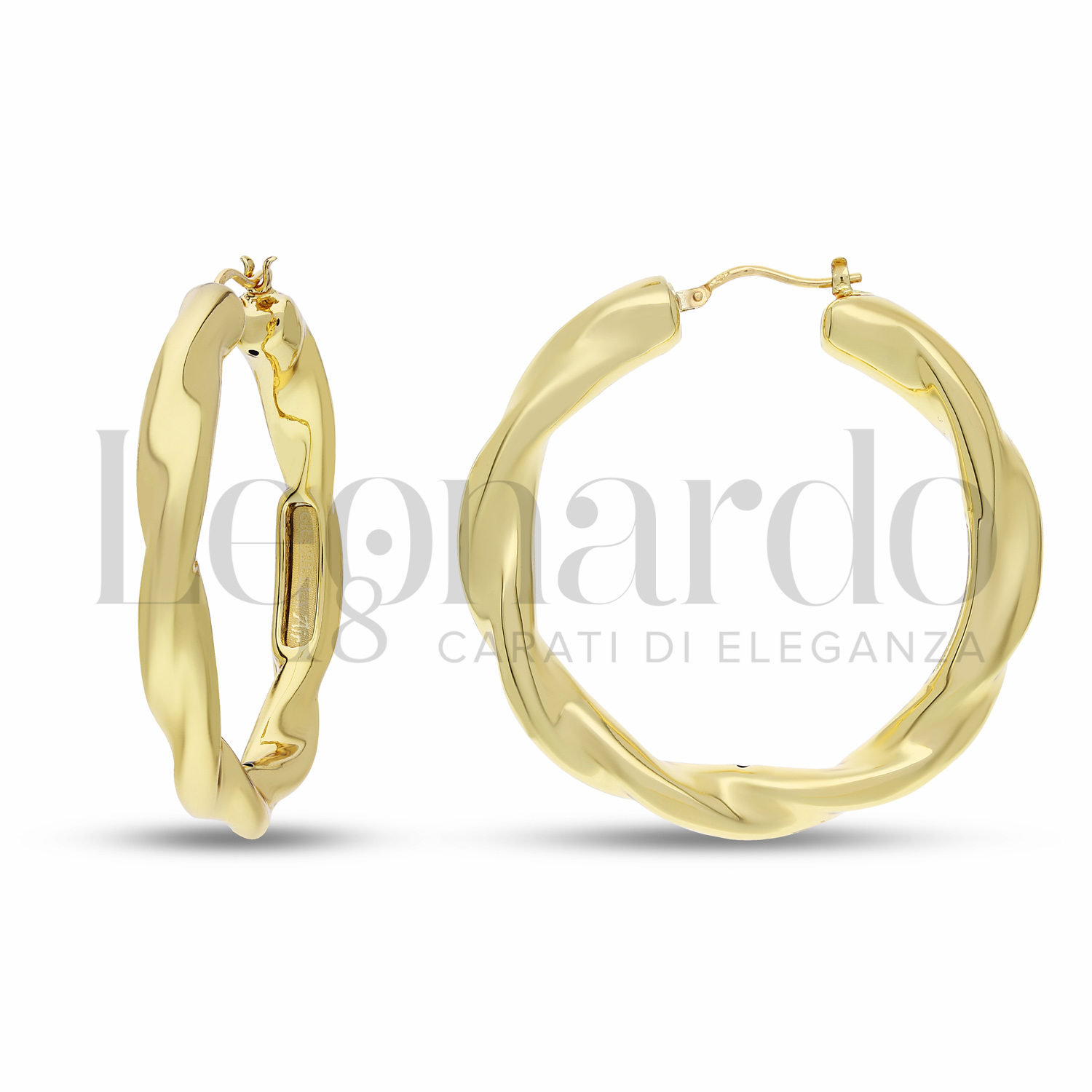 Orecchini a Cerchio da Donna, Air Collection, modello Torchon, realizzati in Elettroformatura, canna 6 mm, diametro 35 mm, finitura lucida, in Oro Giallo.