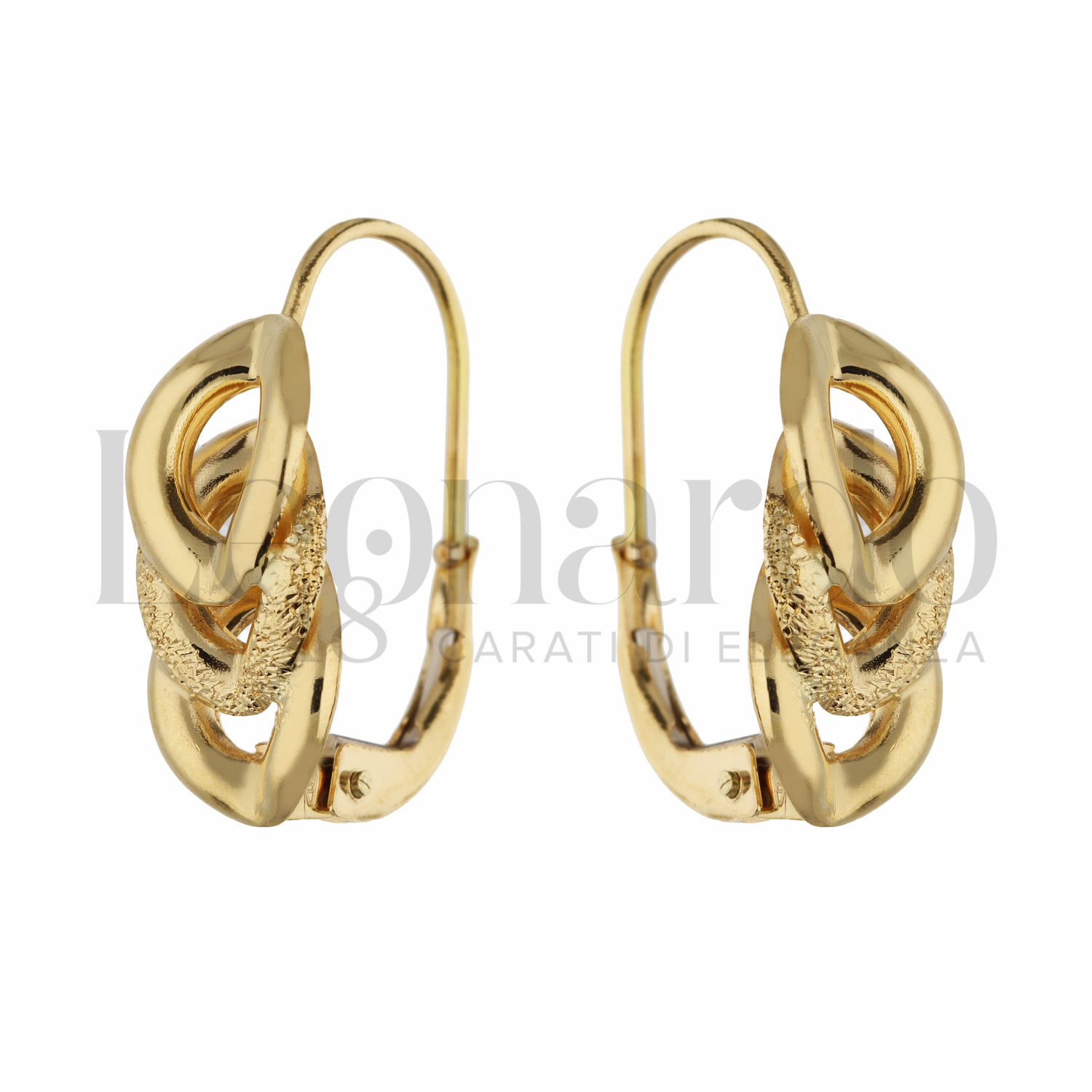 Orecchini da donna scattini, 1° misura, chiusura napoletana, finitura diamantata, in Oro Giallo e Oro Bianco