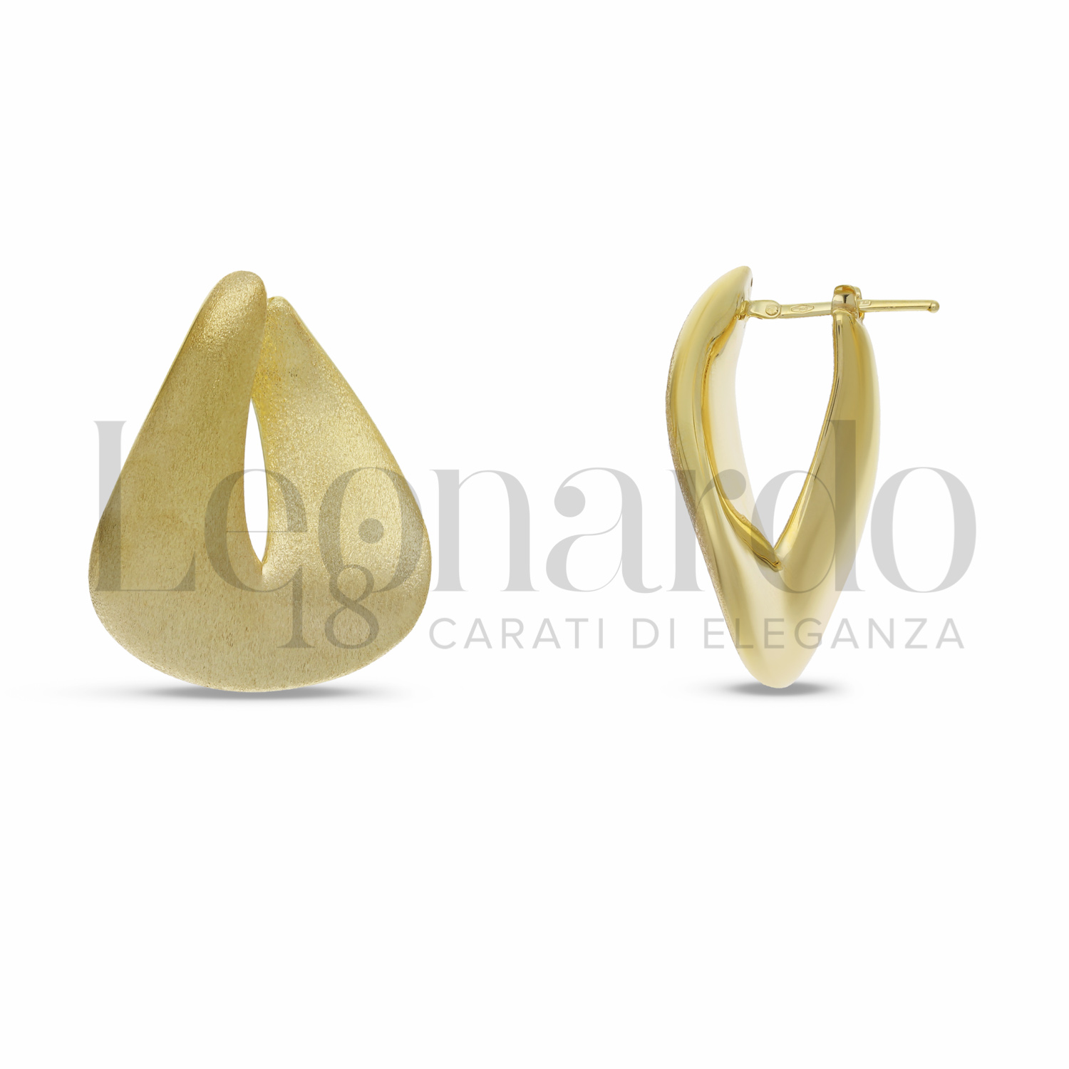 Orecchini da Donna, realizzati in Elettroformatura, 2° misura,, finitura lucida e satinata, chiusura a Baionetta in Oro Giallo. Prodotto su cartoncino con tara da Gr 0,40