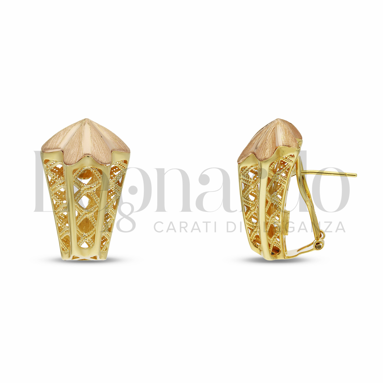 Orecchini a Lobo da Donna Elettrofusi, May Collection, chiusura Clips e Perno, finitura lucida e Satina in Oro Giallo e Oro Rosa.