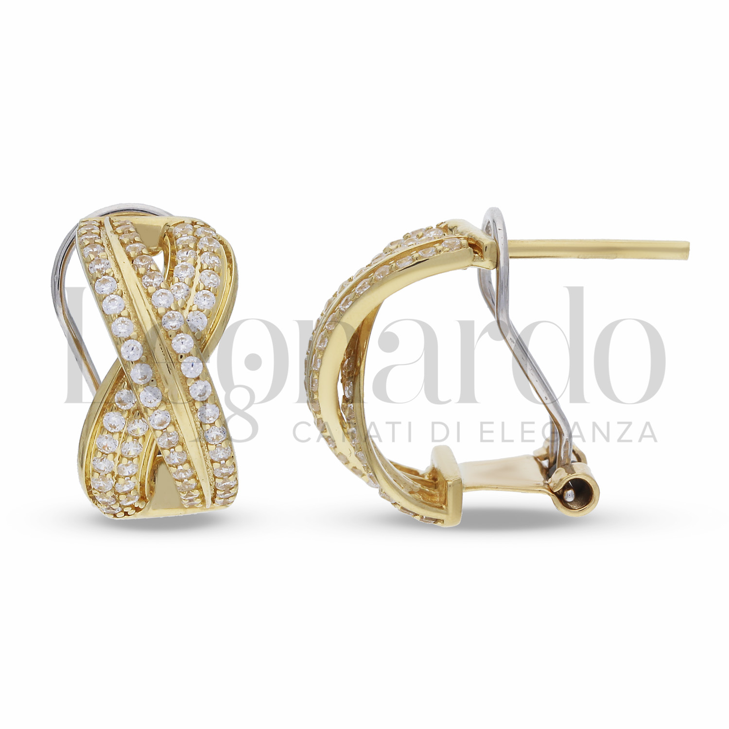 Orecchini a lobo da Donna con pavè di zirconi bianchi in Oro Bianco e Oro Giallo.