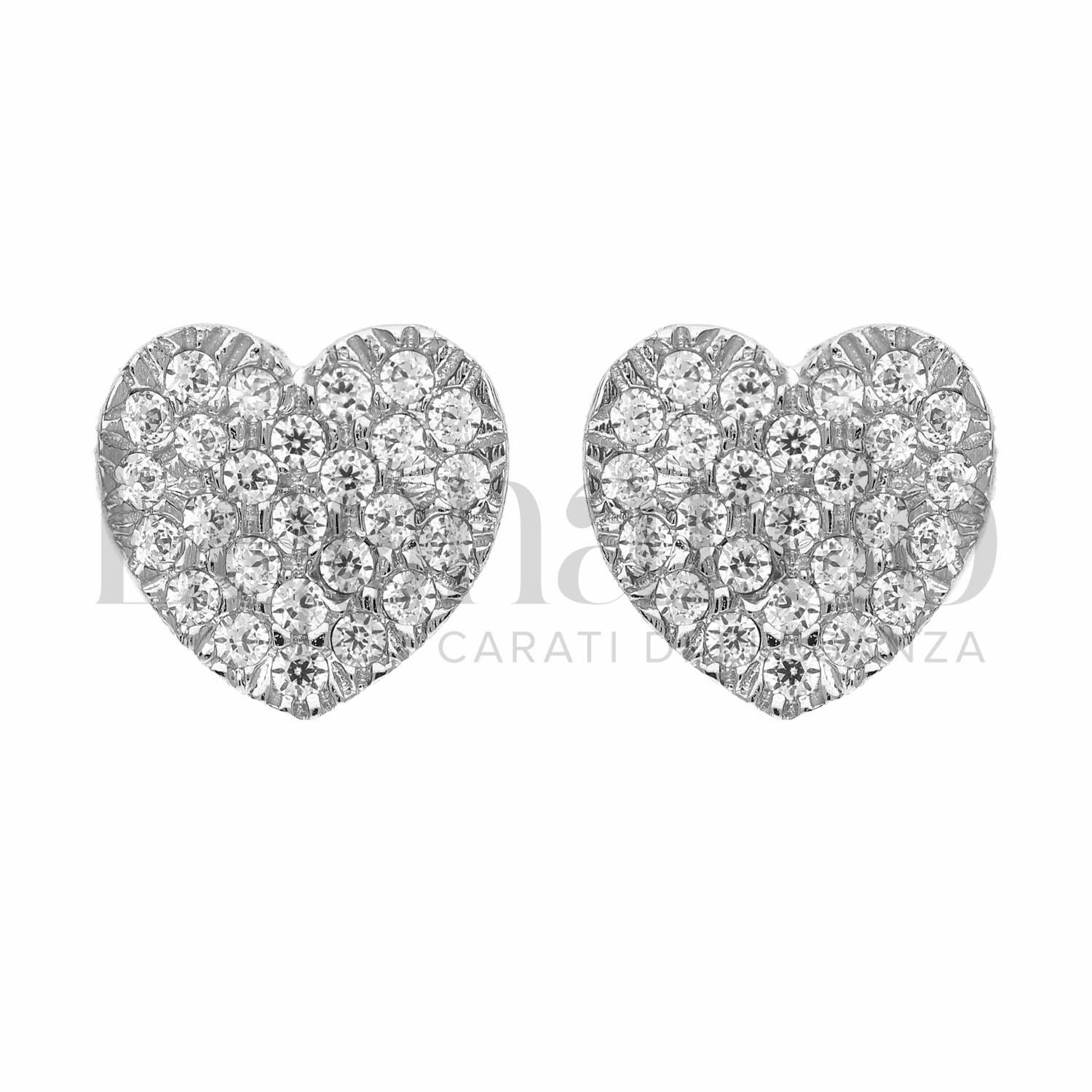 Orecchini Baby a lobo, Cuore Concavo, con zirconi bianchi in Oro Bianco.