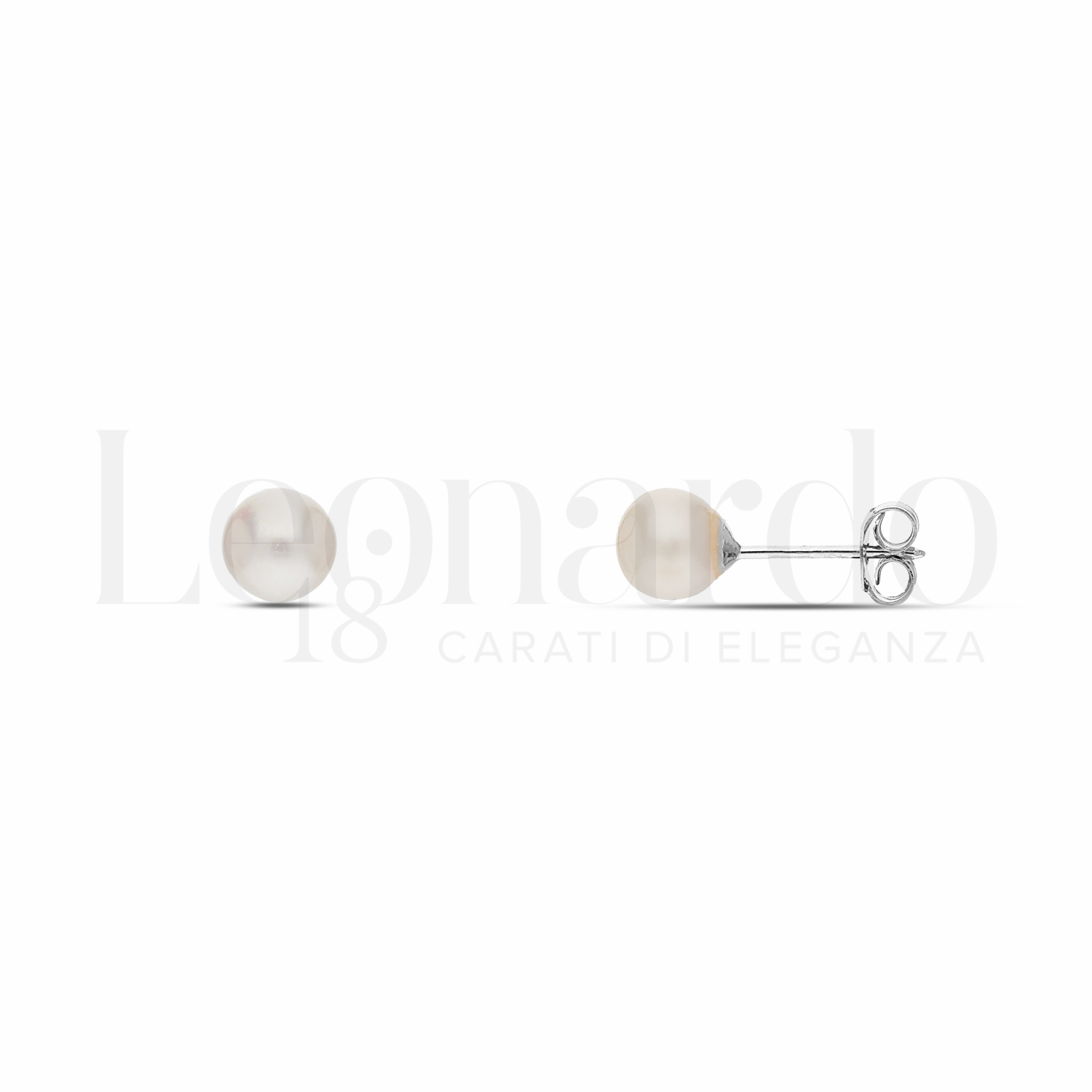 Orecchini a Lobo da Donna, con perla da 4,5 mm, 1° misura, finitura lucida, chiusura Perno e vite in Oro Bianco.