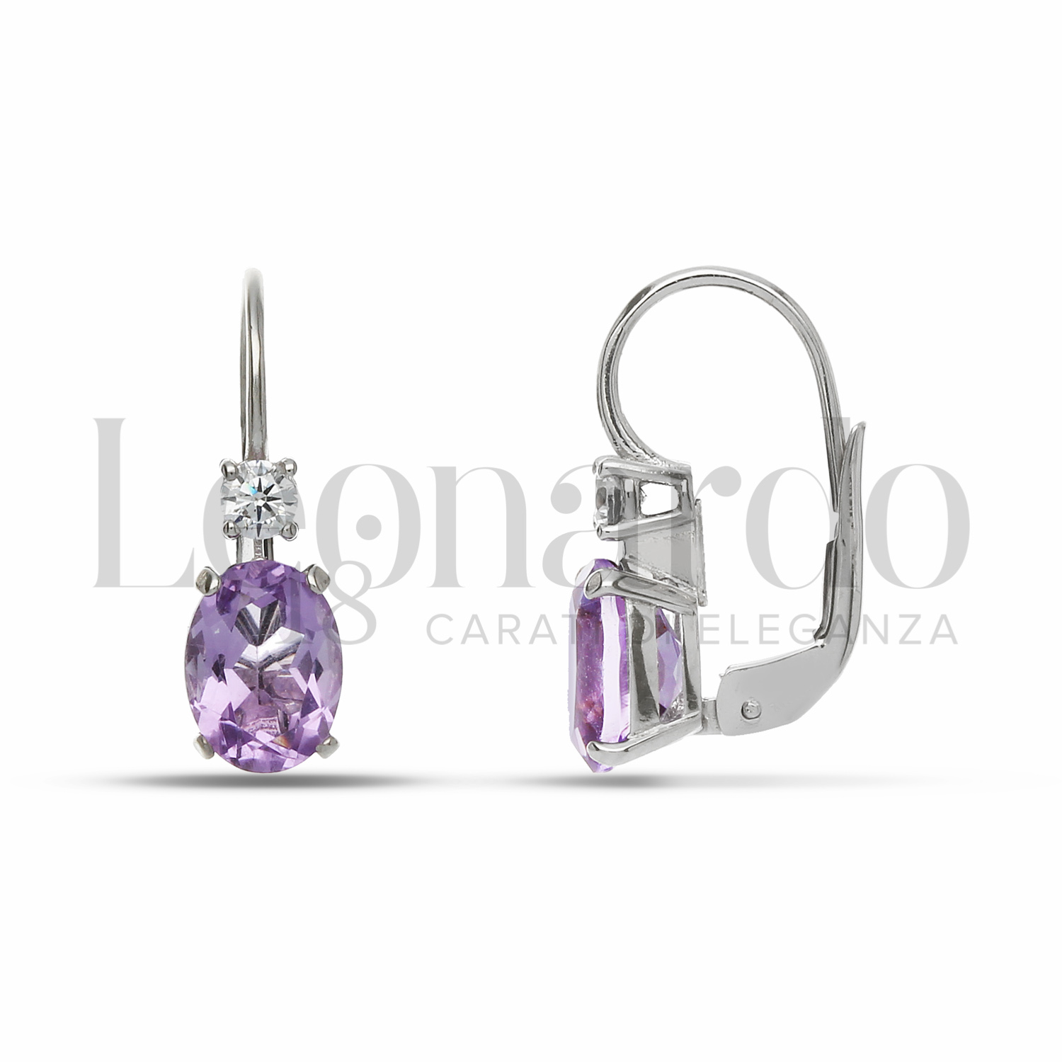 Orecchini da Donna, forma ovale, chiusura a monachella, con ametista idrotermale e zirconi bianchi in Oro Bianco.