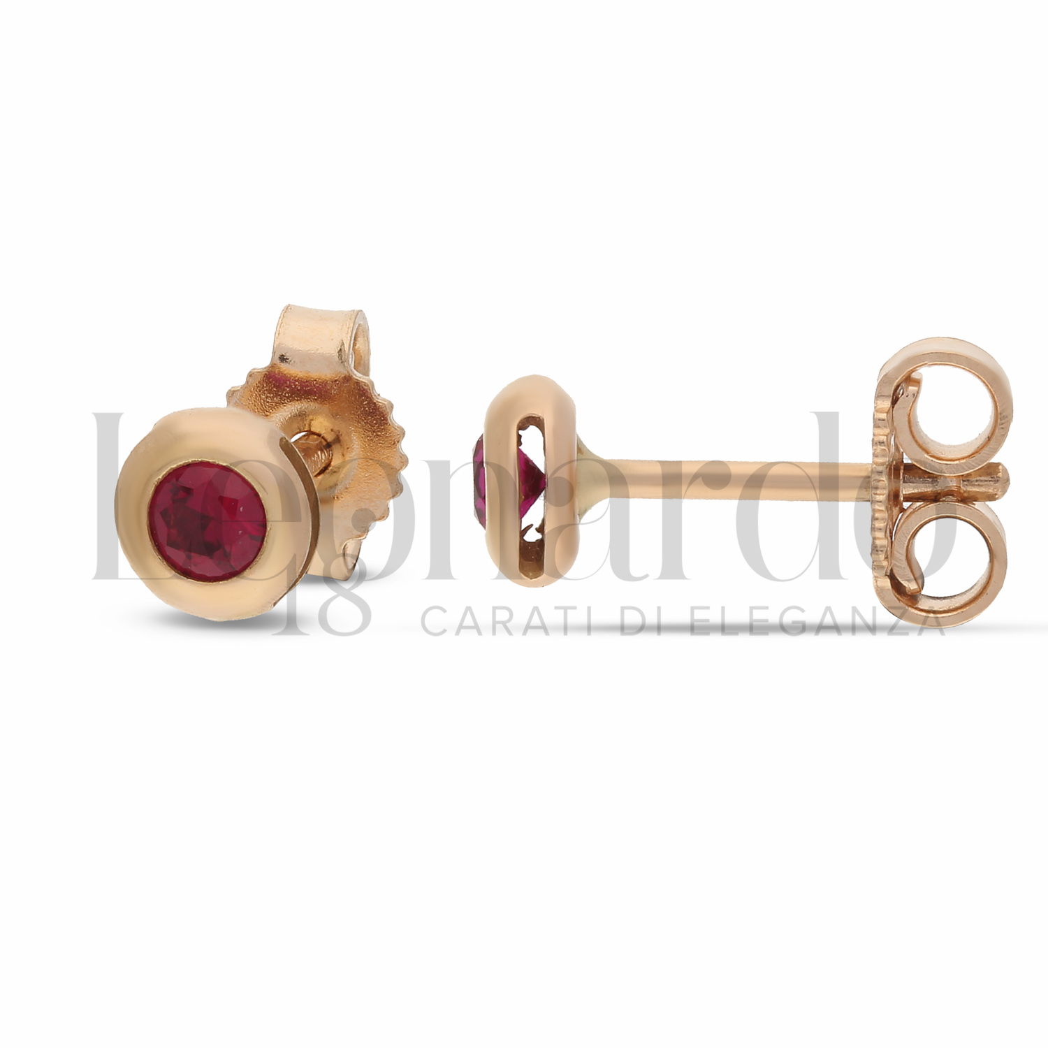 Orecchini Punto Luce da Donna, con Zircone Rosso da 3 mm, modello cipollina, in Oro Rosa.