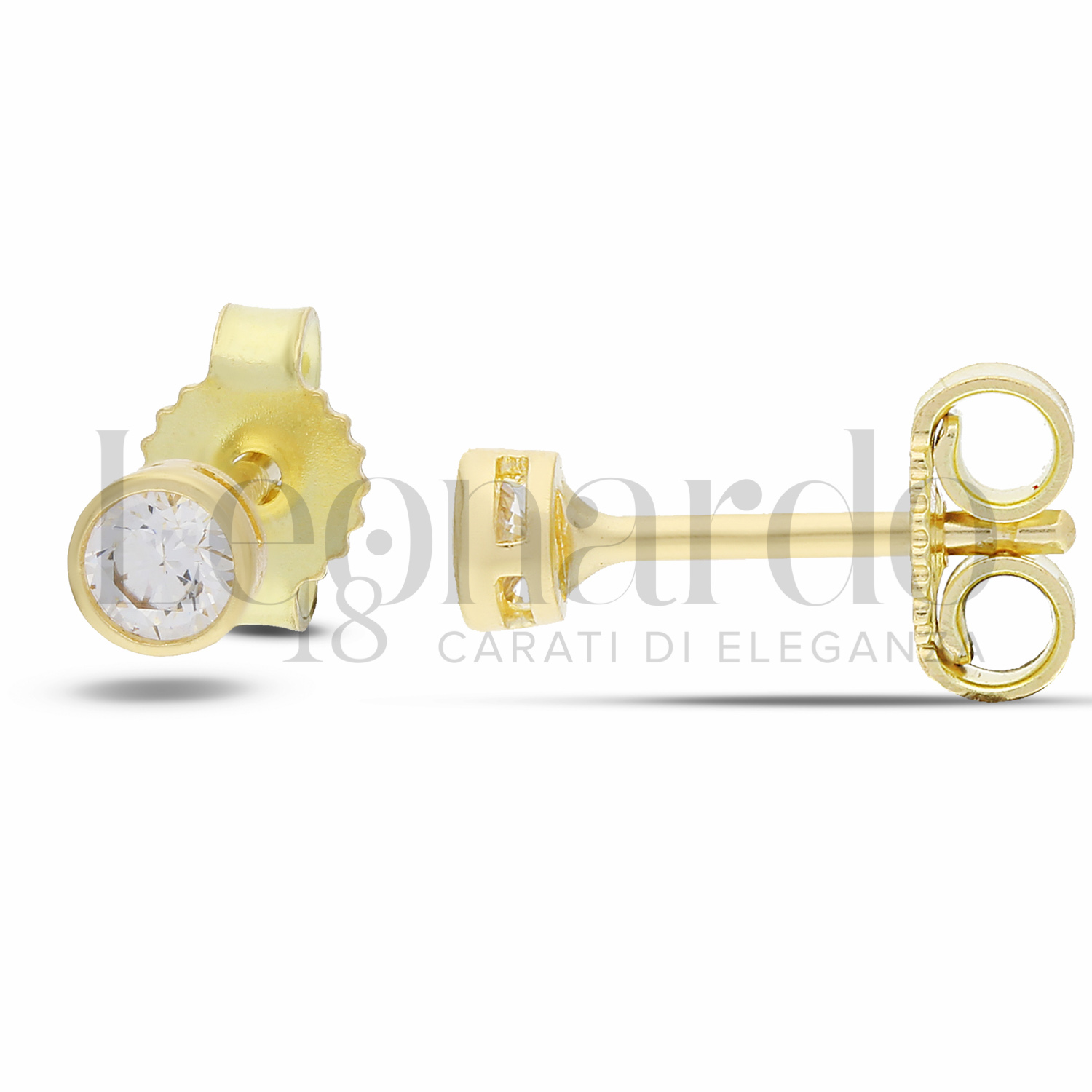 Orecchini Punto Luce da Donna, modello Battuto, con zircone bianco da 4 mm, in Oro Giallo.