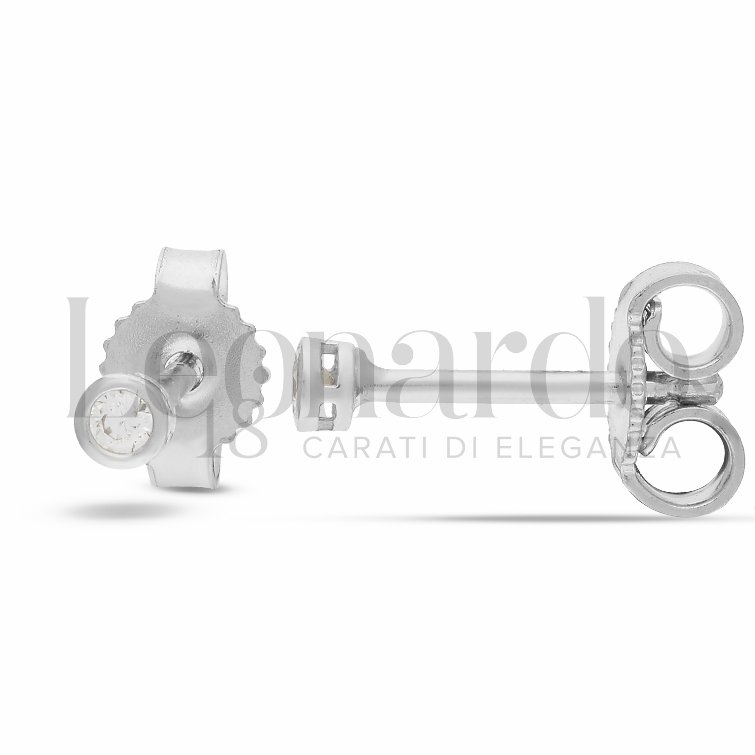Orecchini Punto Luce da Donna, modello Battuto, con zircone bianco da 3 mm, in Oro Bianco.