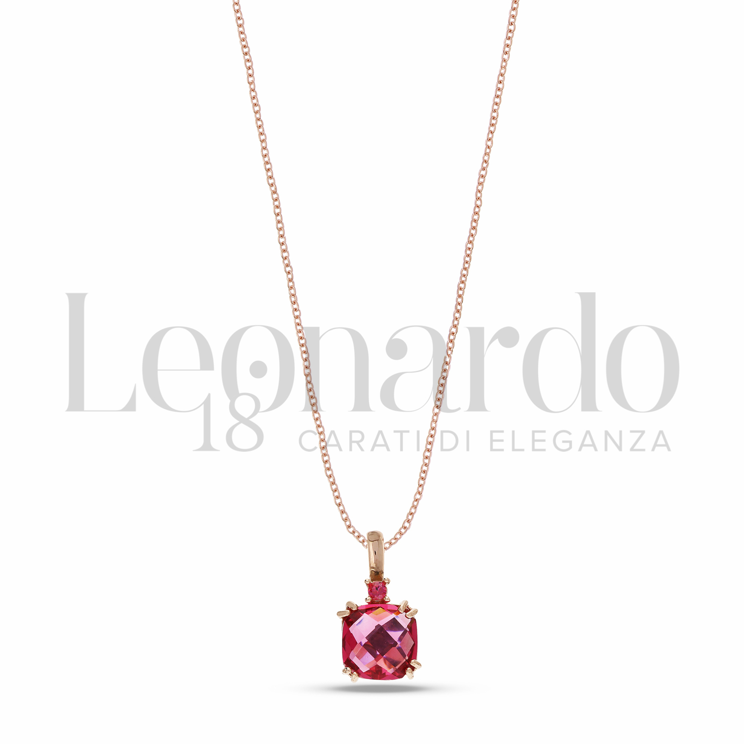 Collana Colorful Collection, con pietra Idrotermale rossa e zircone rossa, di forma quadrata, in Oro Rosa.