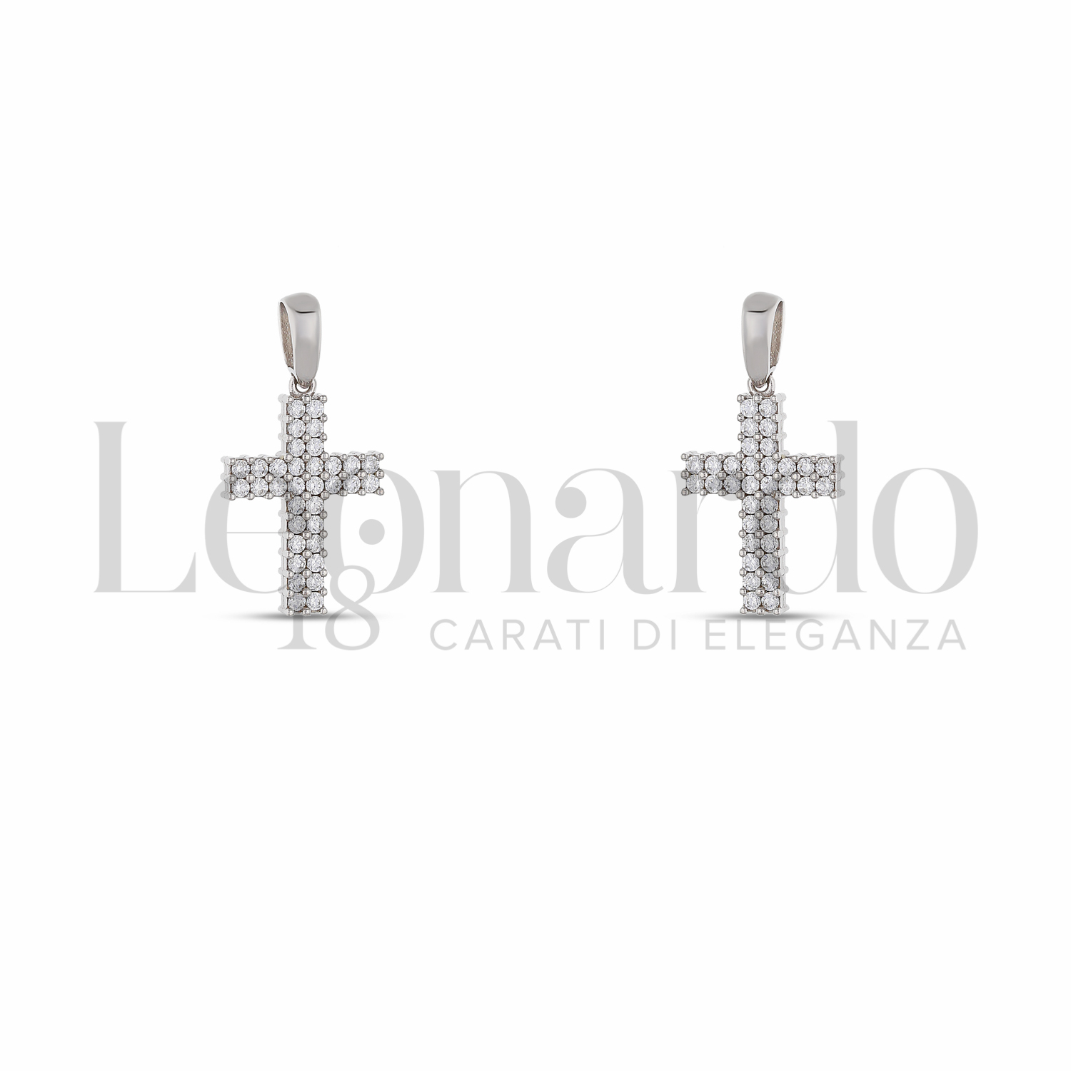 Croce da Donna, modello Double Face con zirconi bianchi, 2 ° misura, in Oro Bianco.