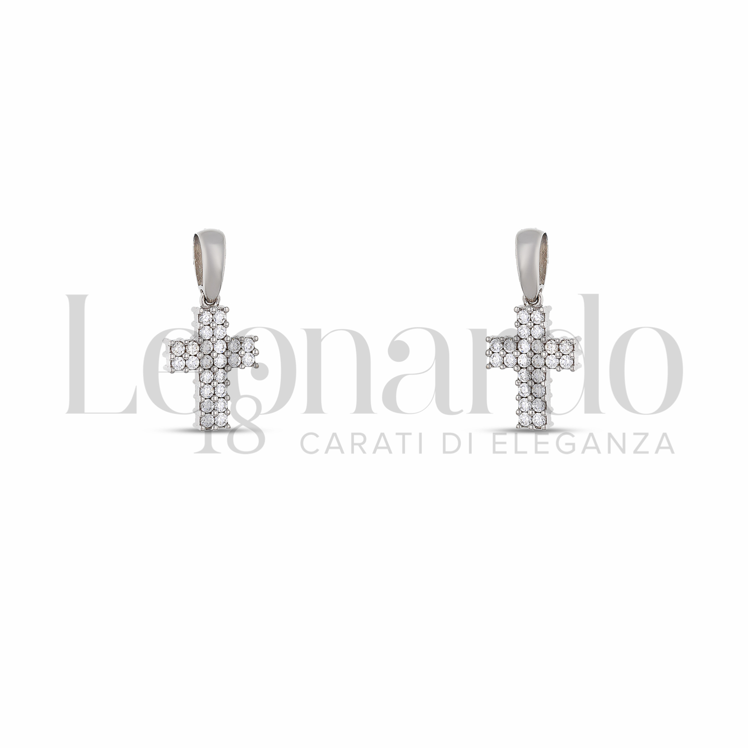 Croce da Donna, con Pavè di zirconi Bianchi, 1 misura in Oro Bianco