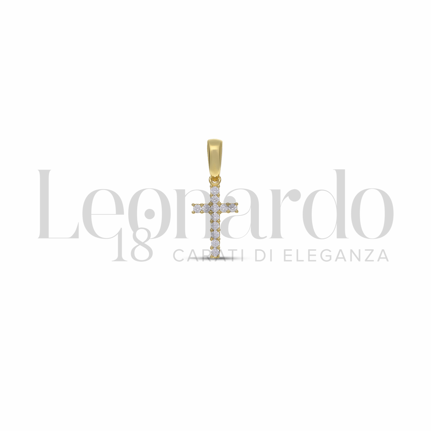 Croce da Donna, 1 ° misura, con Zirconi Bianchi in Oro Giallo.