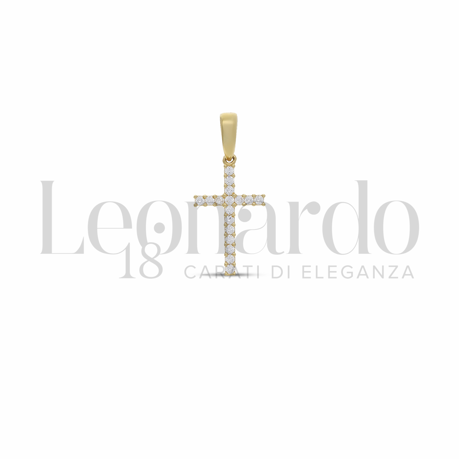 Croce da Donna, 2 ° misura, con Zirconi Bianchi in Oro Giallo.