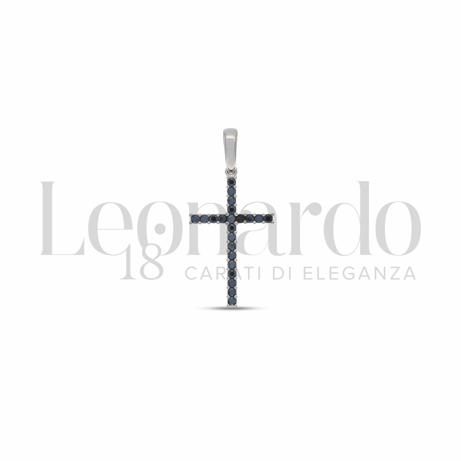 Croce da Donna, 3 ° misura, con Zirconi Neri in Oro Bianco.