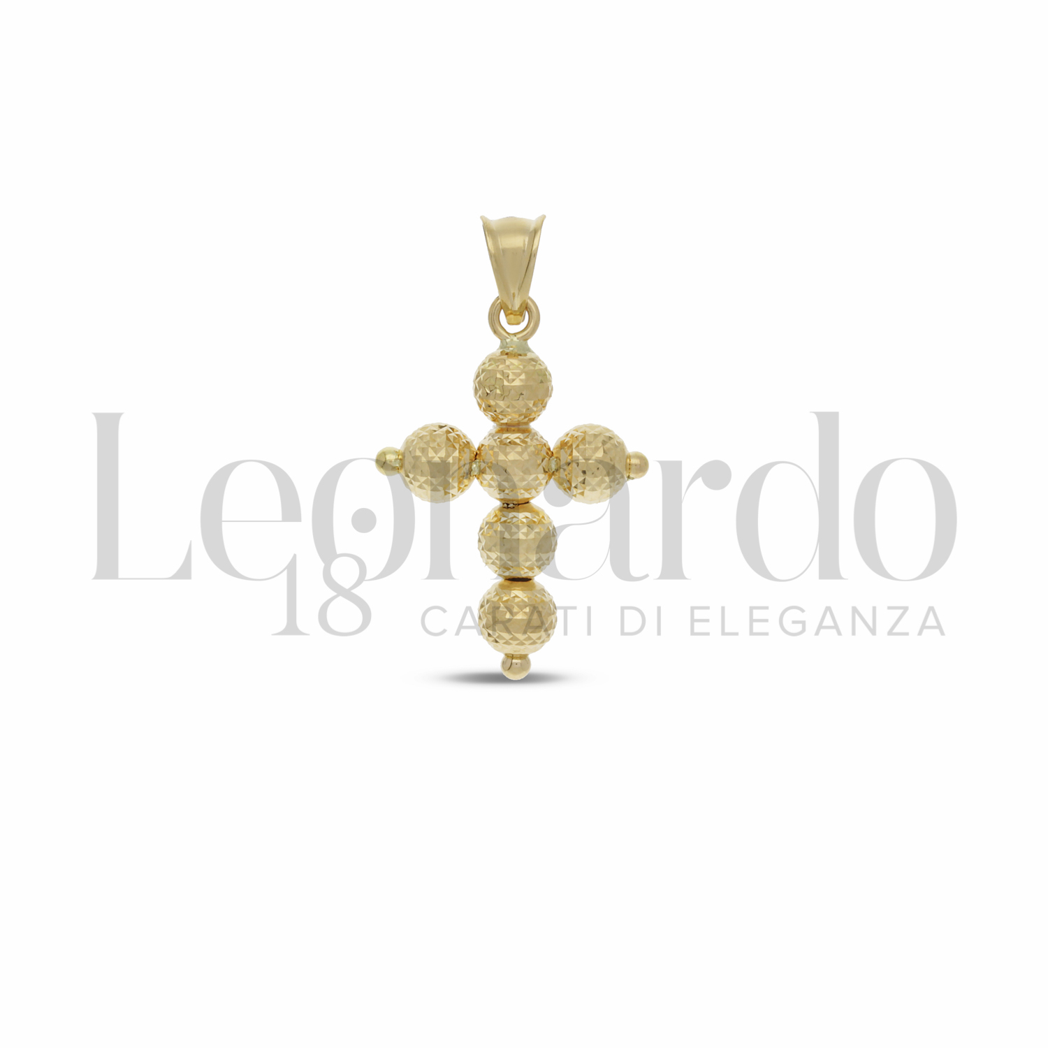Pendente Croce Pallinata Light, sfera da 5,00 mm, 1° Misura, In Oro Giallo.