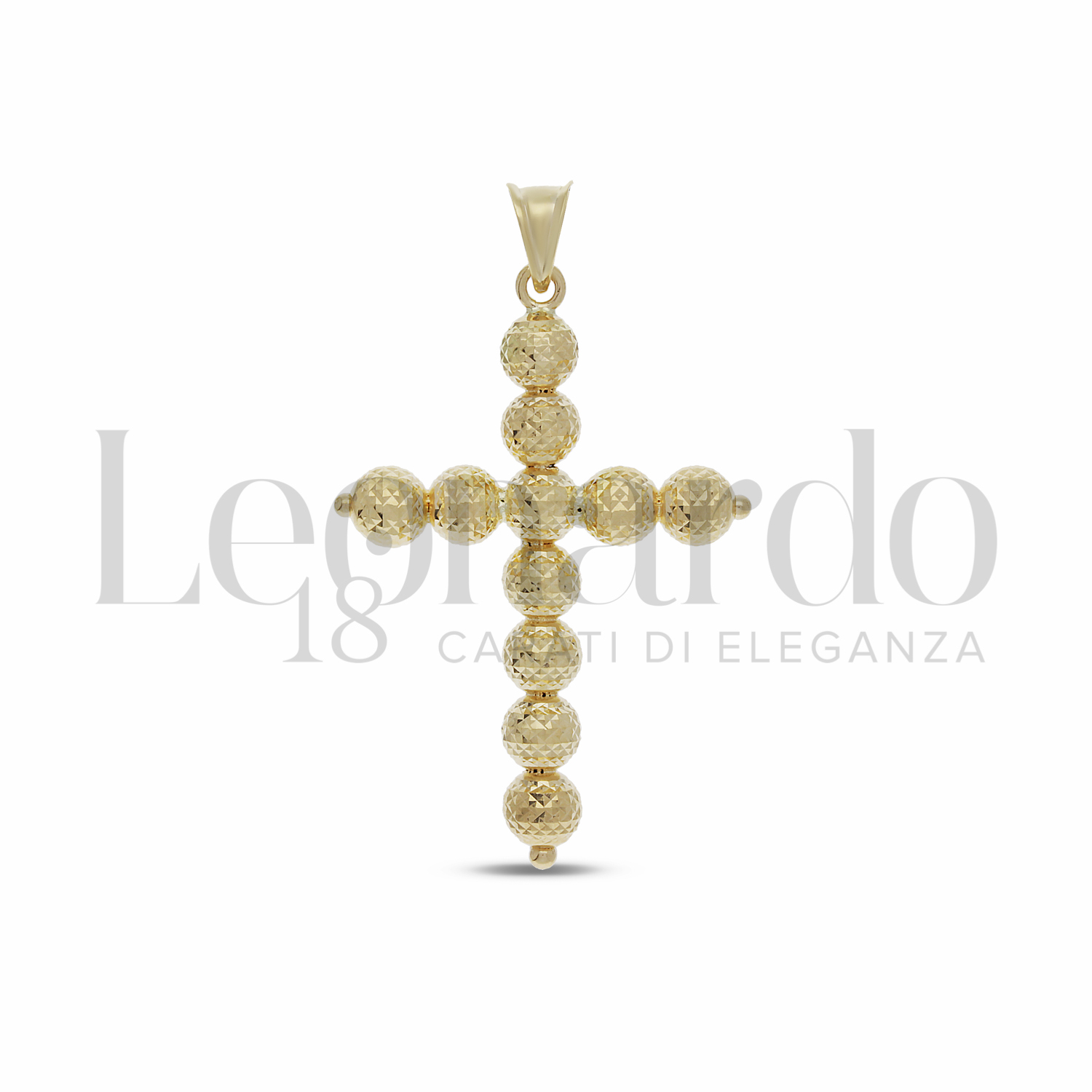 Pendente Croce Pallinata Light, sfera da 5,00 mm, 2° Misura, finitura diamantata Mille Facce, In Oro Giallo.