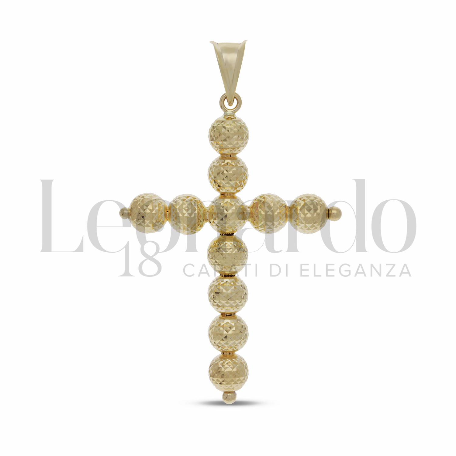 Pendente Croce Pallinata Light, sfera da 6,00 mm, 2° Misura, finitura diamantata Mille Facce, In Oro Giallo o.