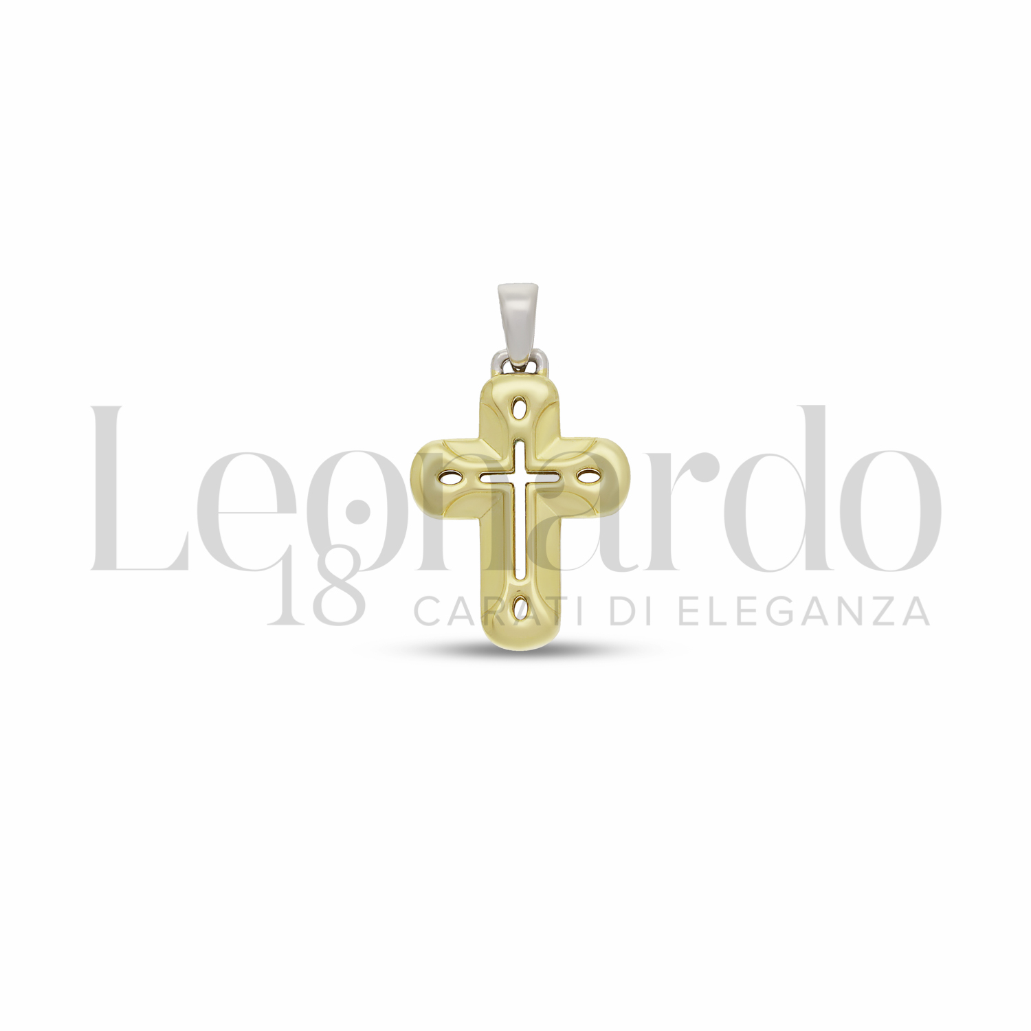 Croce Traforata da Uomo, scatolata, senza Cristo, 1 ° misura, finitura Lucida in Oro Giallo.