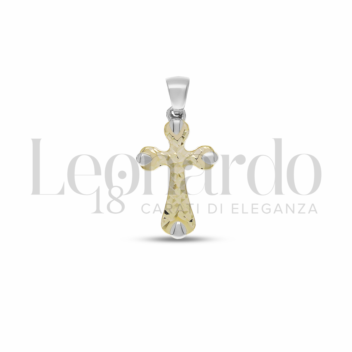 Croce da Uomo, scatolata senza Cristo, 1° misura, finitura lucida e diamantata in Oro Giallo e Oro Bianco.