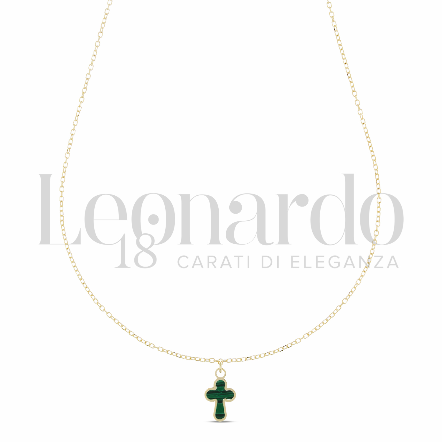 Croce da Uomo, con Catenina Passante, 1° misura, con Malachite, finitura Lucida, in Oro Giallo.