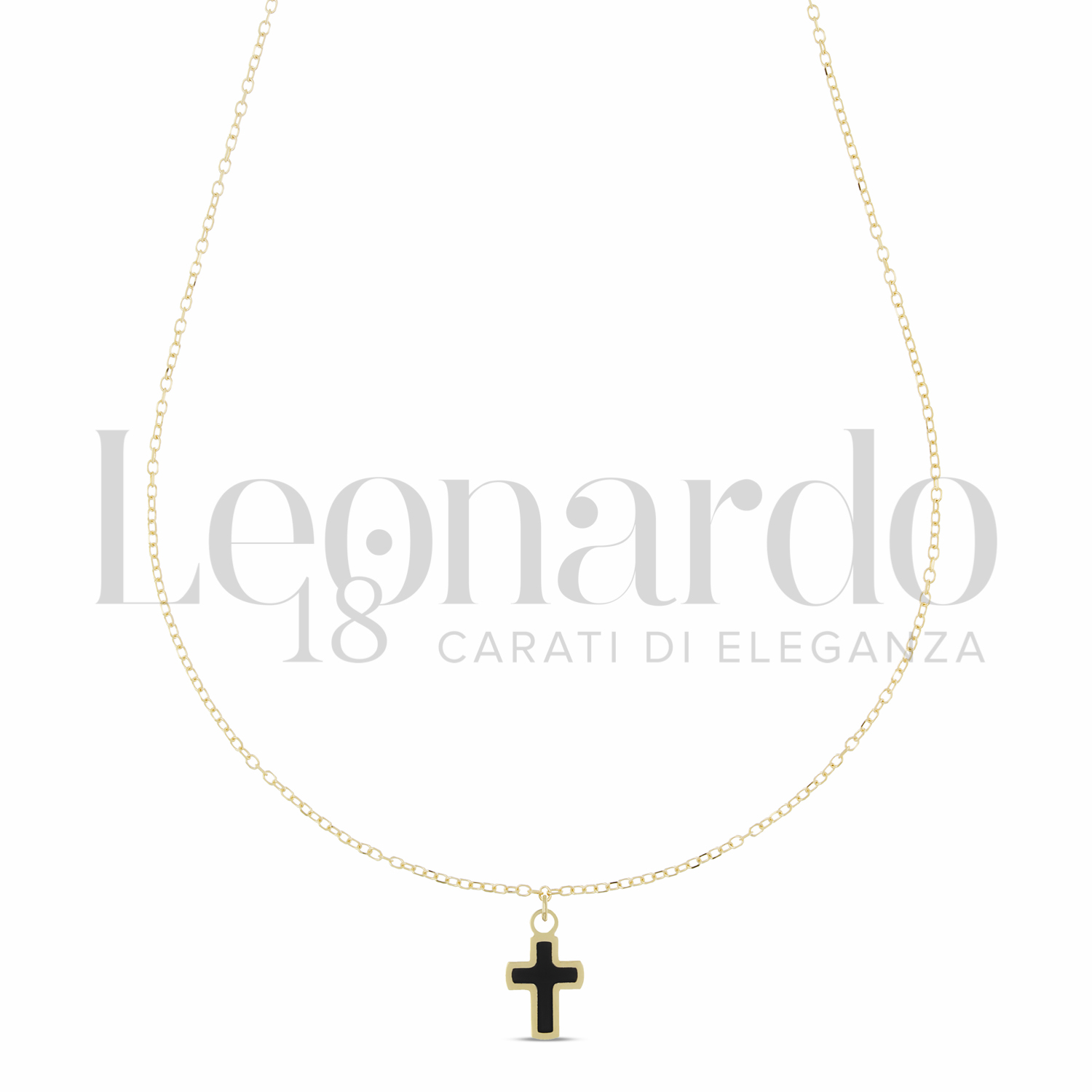 Croce da Uomo, con Catenina Passante, con Onice, 1° misura, finitura Lucida, in Oro Giallo.
