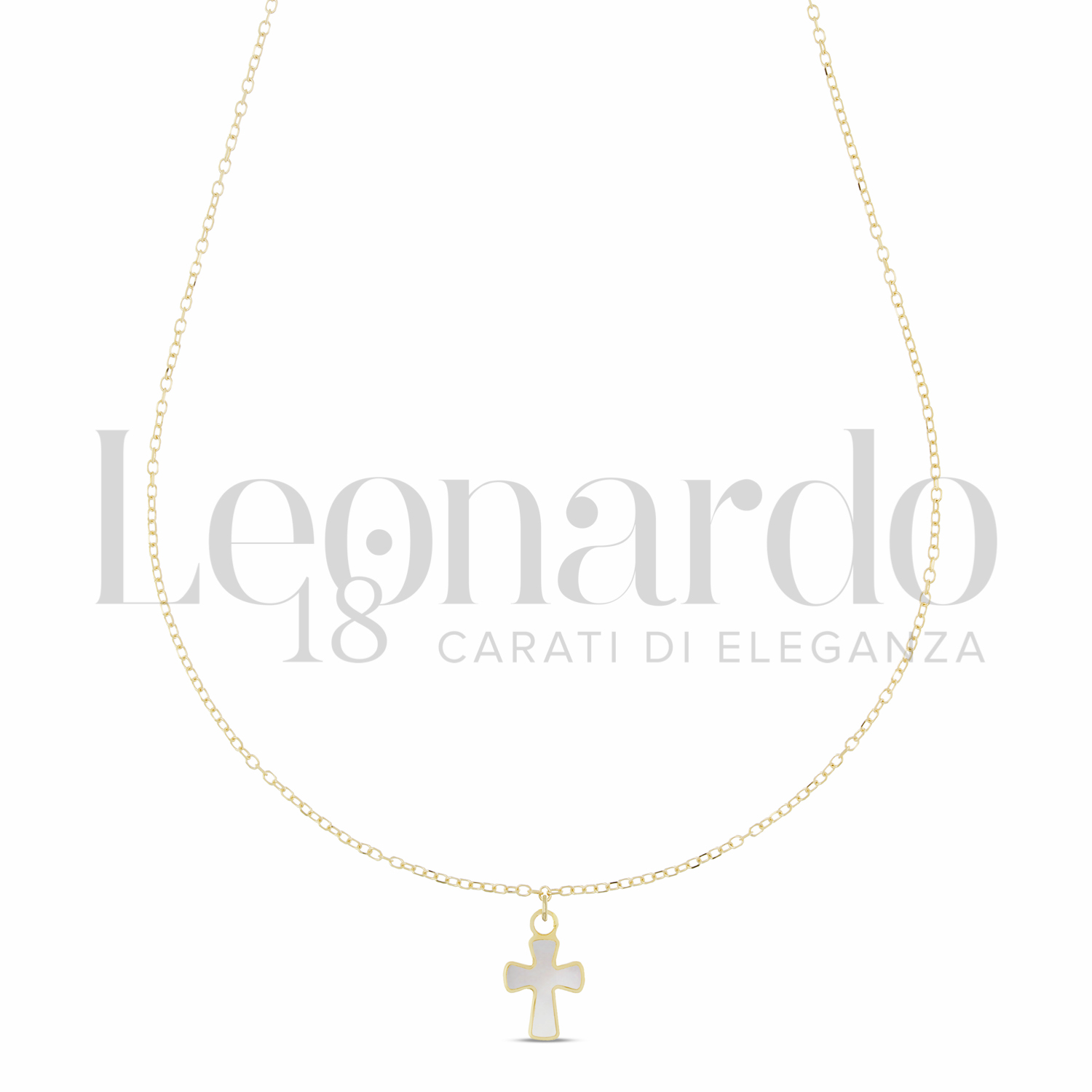 Croce da Uomo, con Catenina Passante, con Madreperla, 1° misura, finitura Lucida, in Oro Giallo.