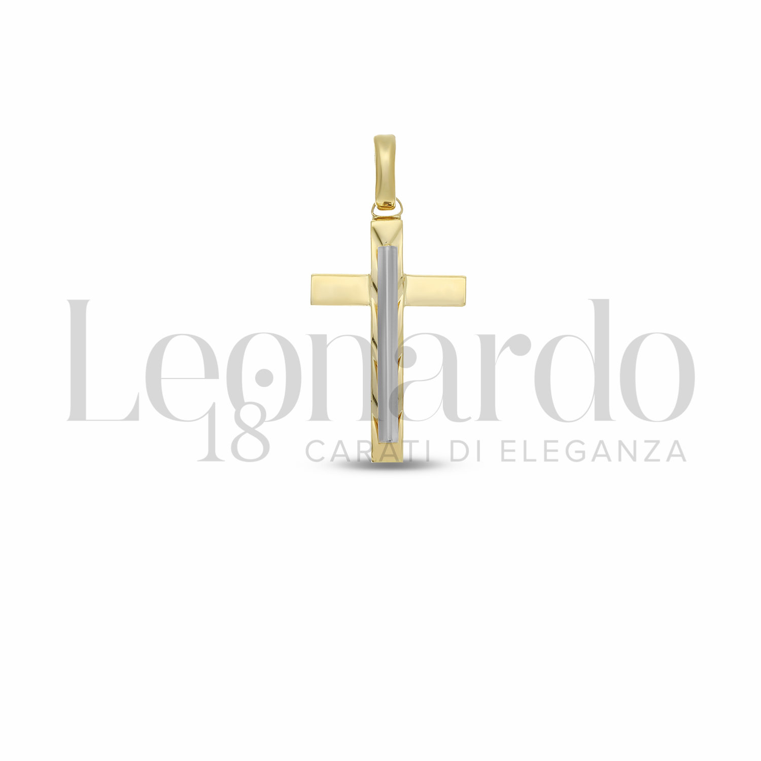 Croce da Uomo, senza Cristo, 1° misura, finitura Lucida e Rigata, in Oro Giallo e Oro Bianco.