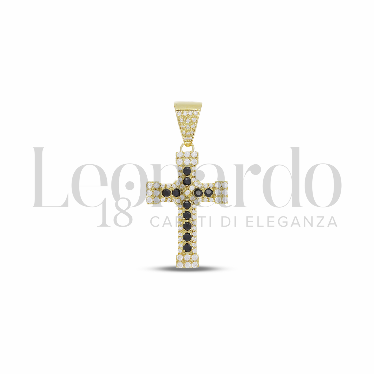 Croce da Uomo, Con Pavè di Zirconi Bianchi e Zirconi Neri, senza Cristo, 1° misura, finitura Lucida in Oro Giallo.