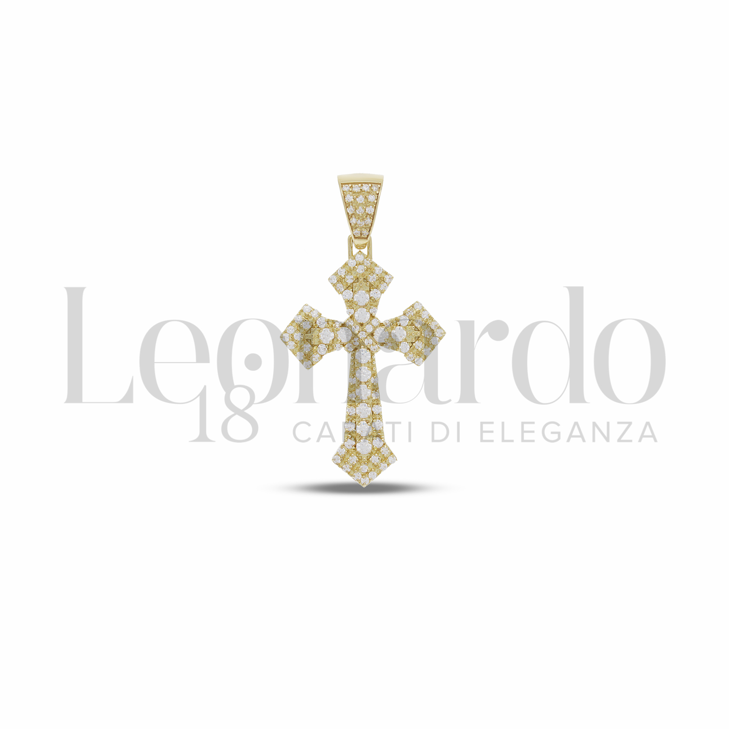 Croce da Uomo, con Pavè di Zirconi Bianchi, 1 ° misura, finitura Lucida, in Oro Giallo.