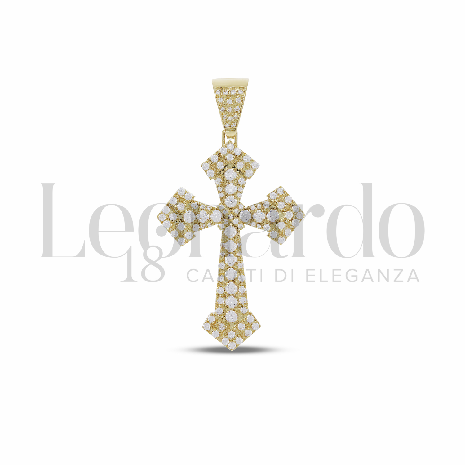 Croce da Uomo, con Pavè di Zirconi Bianchi, 3 ° misura, finitura Lucida, in Oro Giallo.