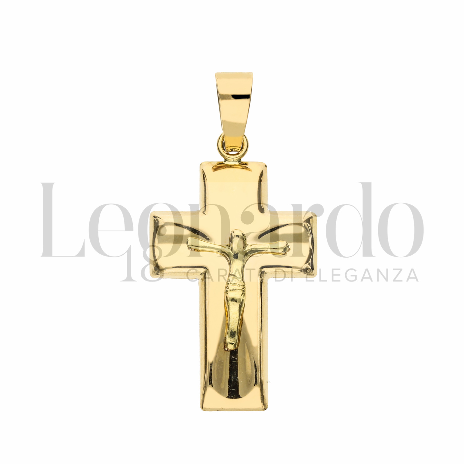 Croce da Uomo, con Cristo, 2° misura, finitura lucida in Oro Giallo
