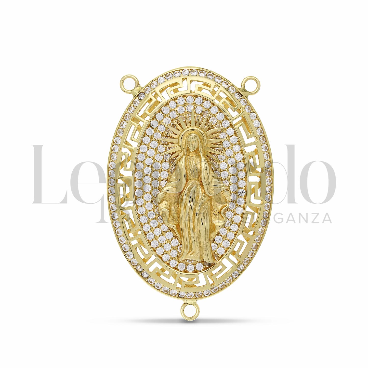 Medaglia Centrale del Rosario, Madonna Miracolosa, con Pavè di Zirconi Bianchi, 3° misura in Oro Giallo.