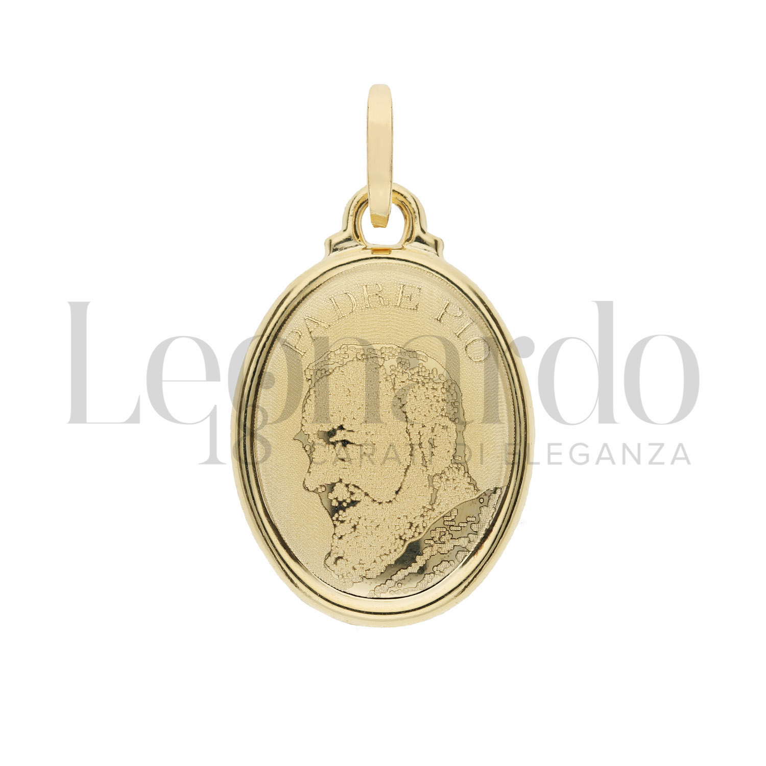 Medaglia Sacra con il volto di Padre Pio laserato, forma ovale, in oro giallo, da 1,10 Grammi. Prodotto venduto con bustina di tara 0,08 Grammi