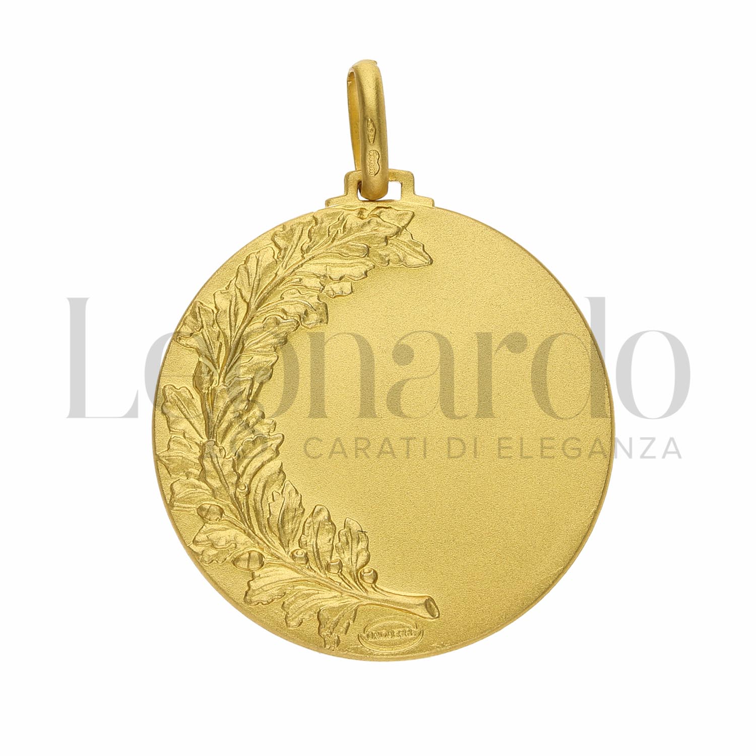 Medaglia premiazione con foglia di alloro in Oro 18 Carati