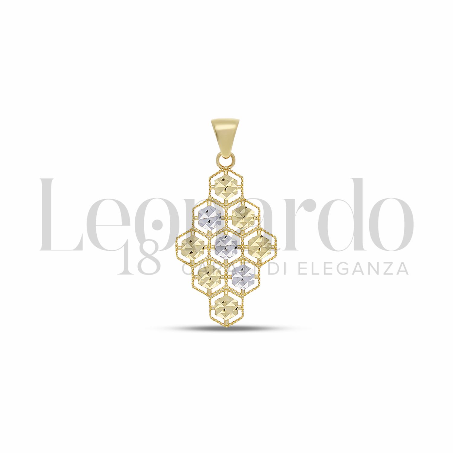 Pendente Fantasia da Donna Aura Collection con lastre diamantate con bordi godronati in Oro Giallo e Oro Bianco.
