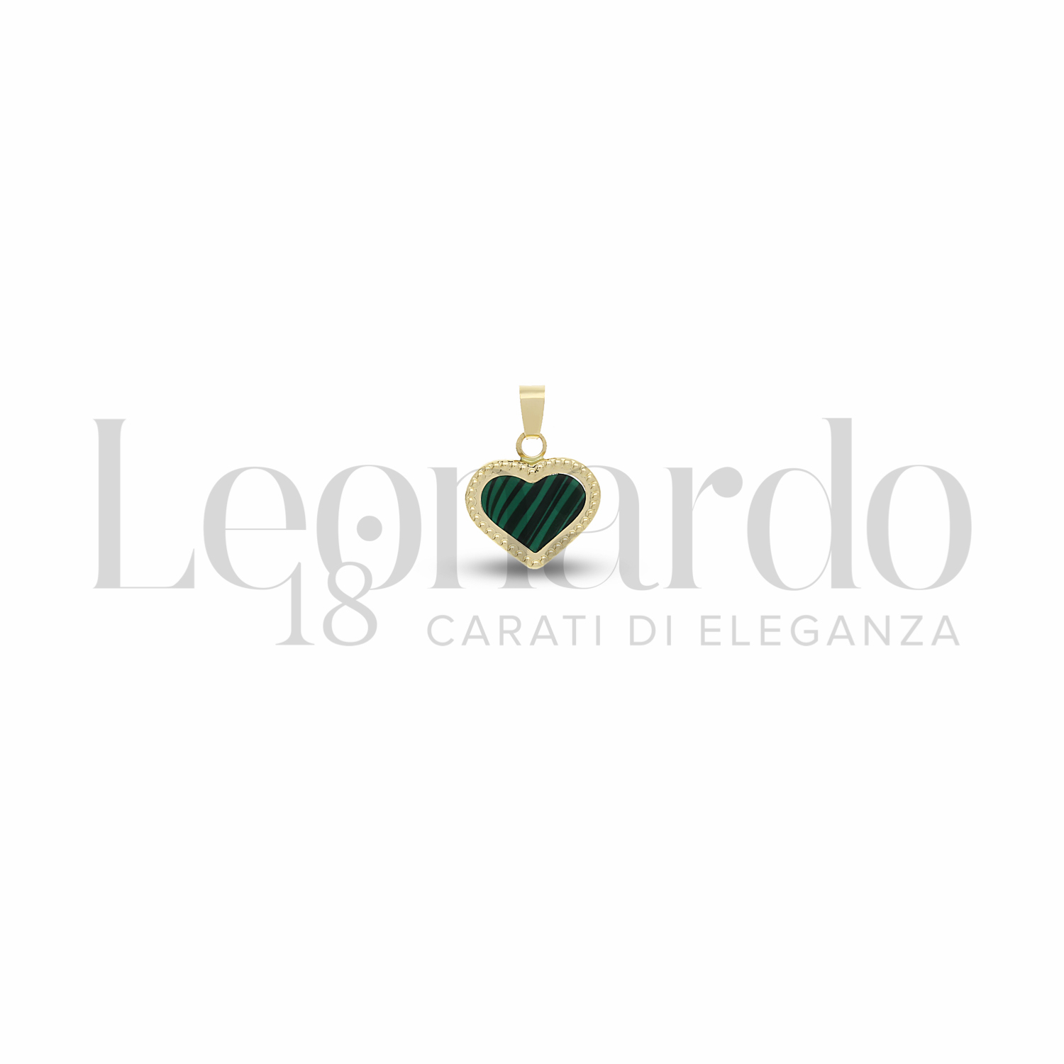 Pendente Fantasia da Donna, Cuore, con Malachite, 1° misura, modello Double Face, finitura lucida in Oro Giallo.