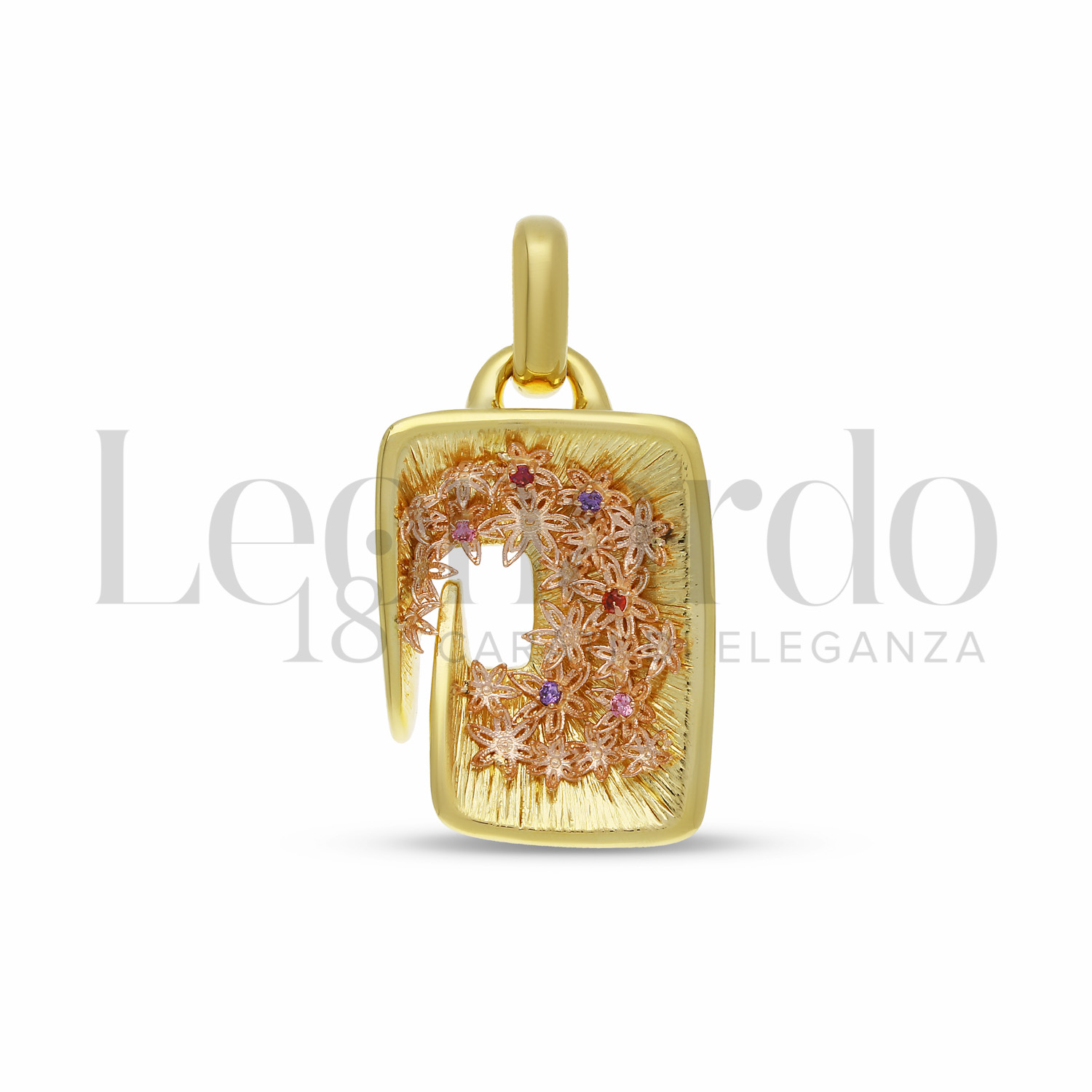 Pendente Fantasia da Donna, May Collection, di Forma Rettangolare, con Zirconi Rosa, in Oro Giallo e Oro Rosa.