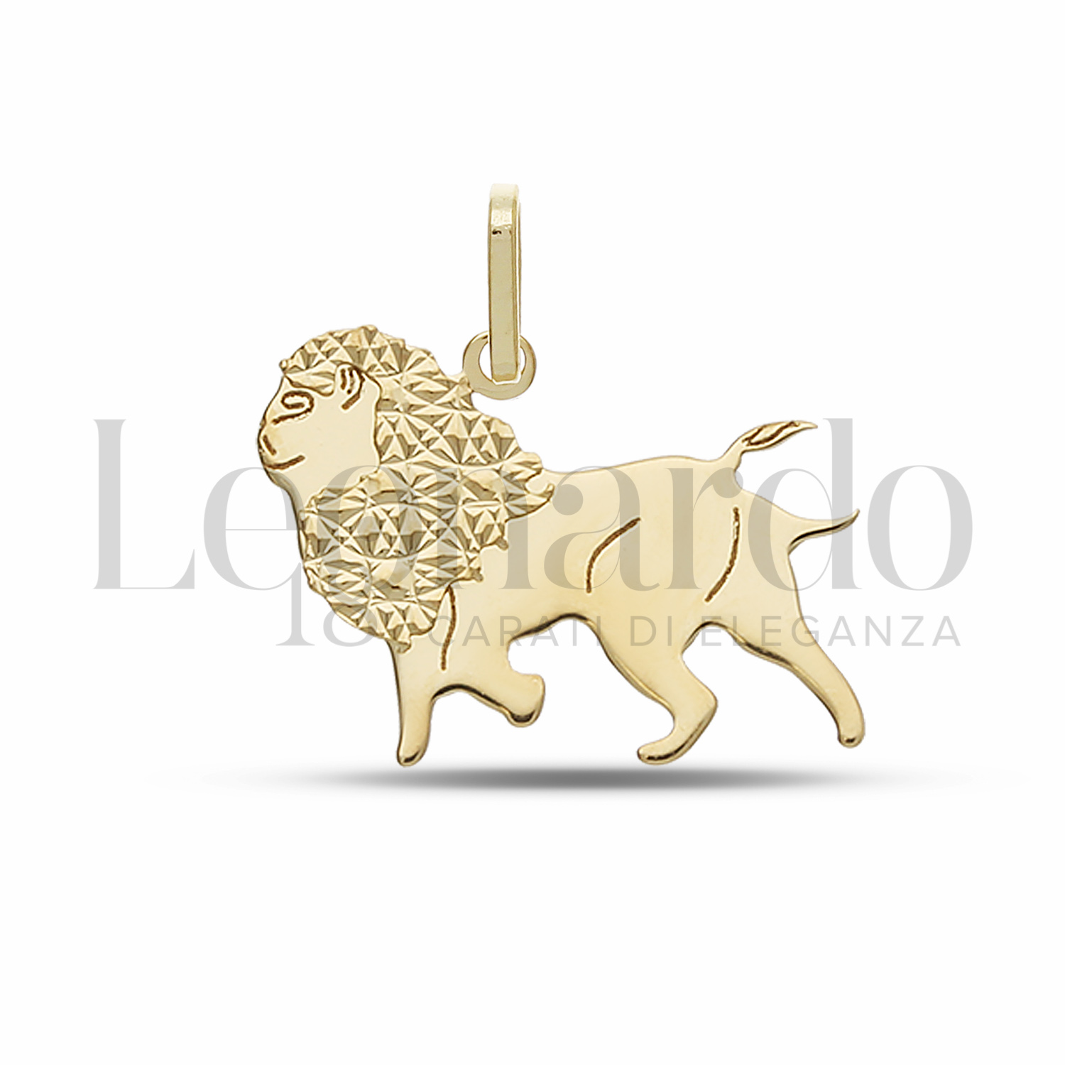 Pendente da Donna a lastra, Leone, 1° misura, in Oro Giallo. Prodotto imbustato con tara da GR 0,08