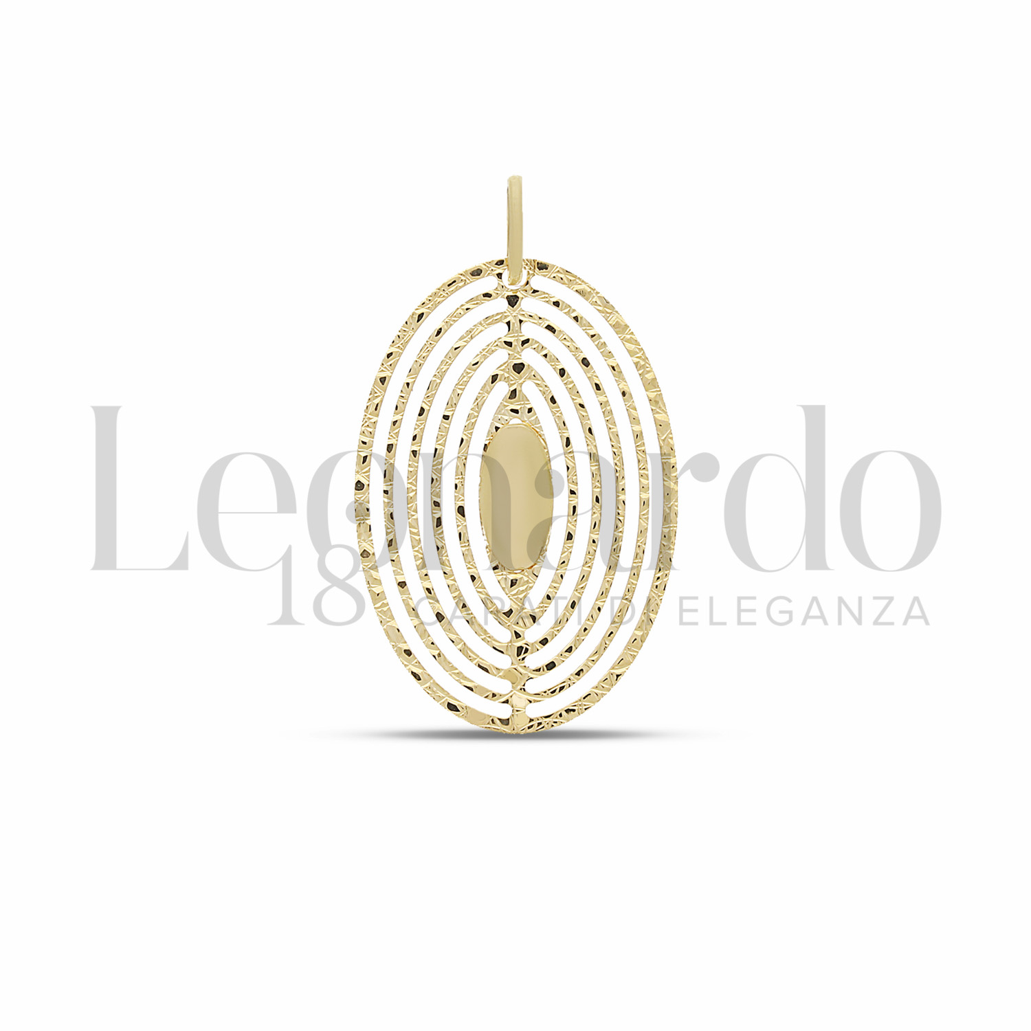 Pendente a Lastra Traforato Superleggero, Ovale, da Donna, finitura Lucida e Diamantata in Oro Giallo.