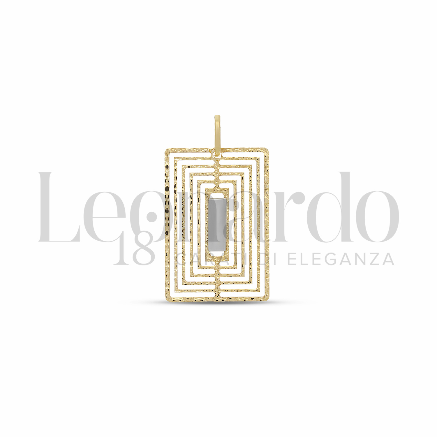 Pendente a Lastra Traforato Superleggero, Rettangolo, da Donna, finitura Lucida e Diamantata in Oro Giallo e Oro Bianco.