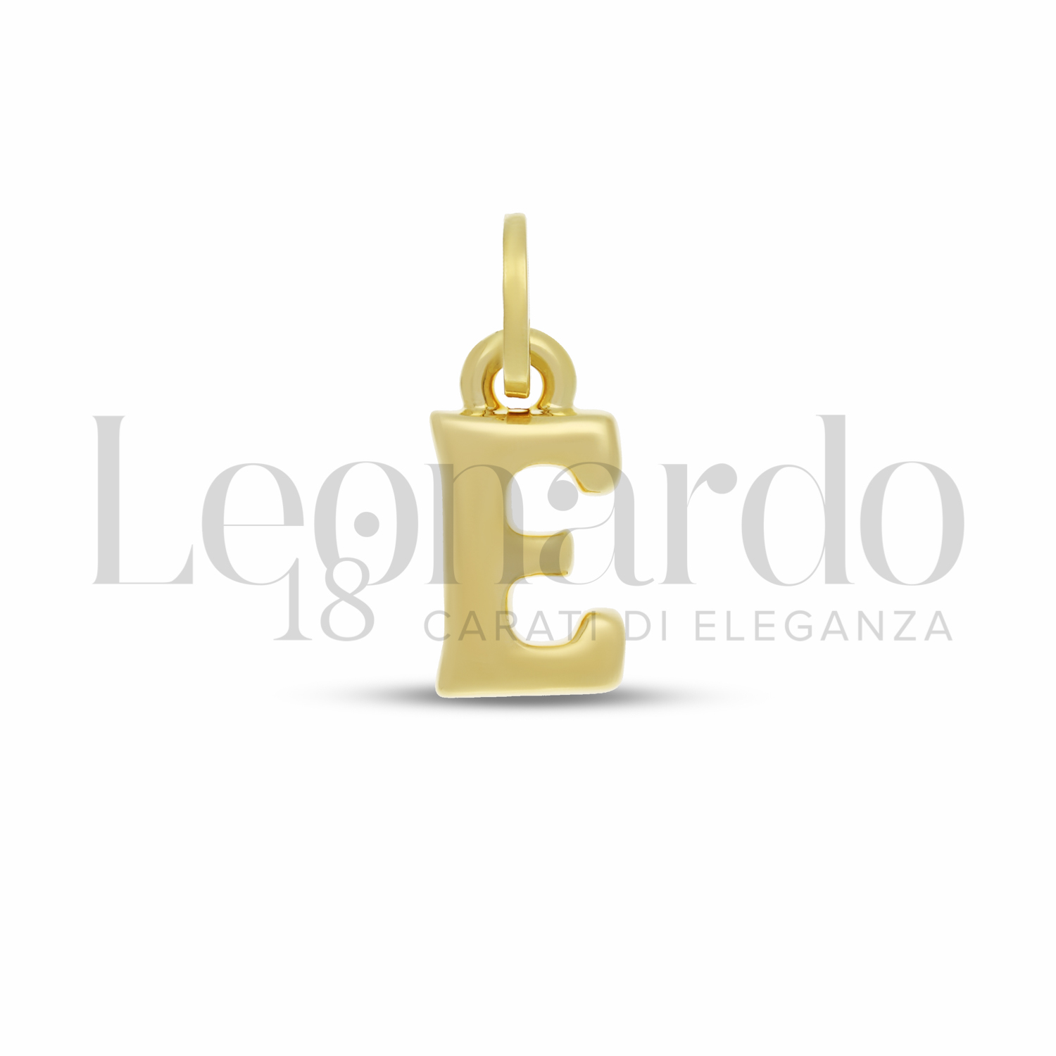 Pendente Lettera Elettroformato, Lettera E, finitura lucida in Oro Giallo.