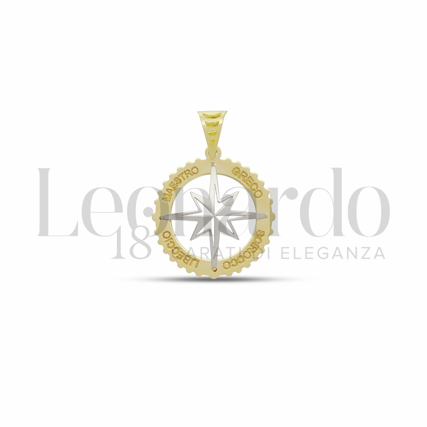 Pendente da Uomo Monolastra Superleggero con Rosa dei Venti, 1° misura, in Oro Giallo e Oro Bianco.
