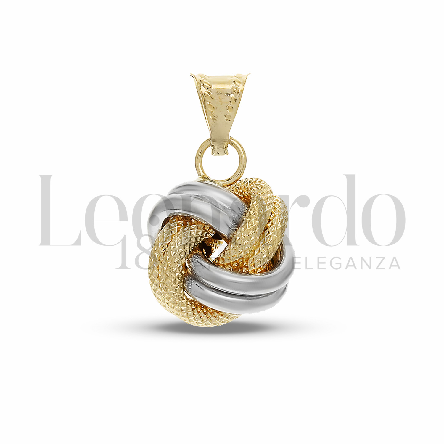 Pendente Nodo da Donna, 2° misura, finitura lucida e godronata in Oro Giallo e Oro Bianco.