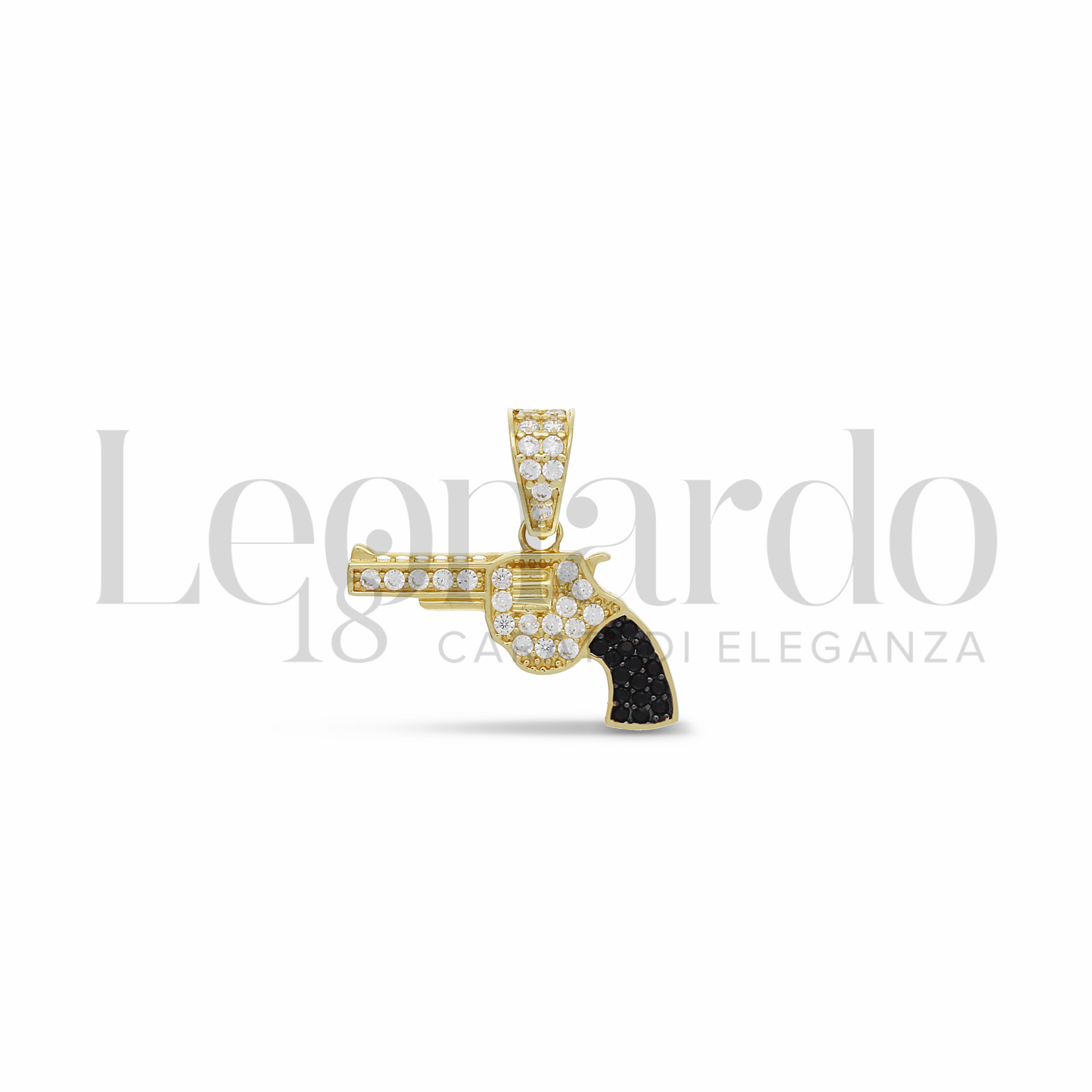 Pendente da Uomo, Pistola, con Zirconi Bianchi e Zirconi Neri, 1° misura, finitura lucida in Oro Giallo.