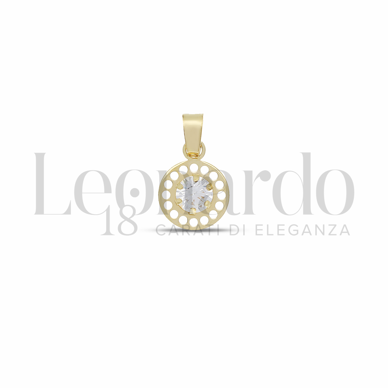 Pendente Punto Luce Da Donna, Tondo, con Zircone Bianco da 4 mm, finitura lucida in Oro Giallo.